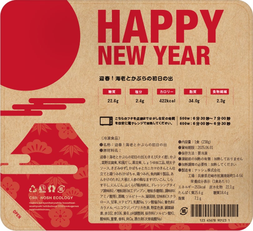 この度、普段の食事だけでなく、行事やイベント時でも「nosh」をご利用いただけるよう、プレミアムメニュー、かつ”期間限定イベントメニュー”として、クリスマス&お正月にふさわしい豪華4商品を発売。高知県のブランド鶏として有名な「四万十鶏」を贅沢に使用し、雪だるまの白をイメージしたポルチーニソースで見た目も可愛いらしく仕上げた「四万十鶏のポルチーニクリームソース仕立て〜雪だるまの白〜」や、皆さまの一年の健康と幸せを願い、縁起の良い食材をふんだんに詰め合わせた「迎春!海老とかぶらの初日の出」などが新登場します。また、食べる前のワクワク感を味わっていただけるよう、各イベントに合わせた限定デザインのパッケージを採用しております。