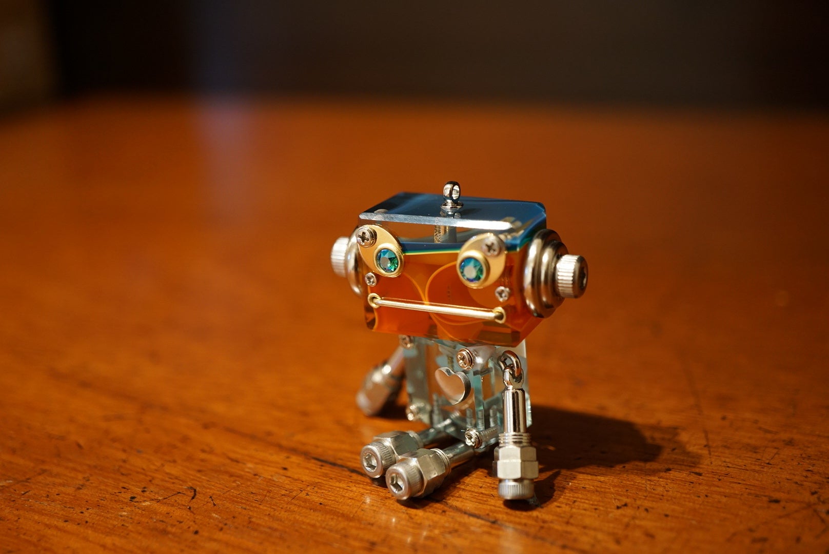 1994年に電子機器を扱う仕事をする中、工業製品部品のデザインの素晴らしさに気づき、これらの物で何か新しいことが出来ないかと考えたことから始まる。あらゆる素材の良さを活かしたロボットモチーフ作品を製作している。
