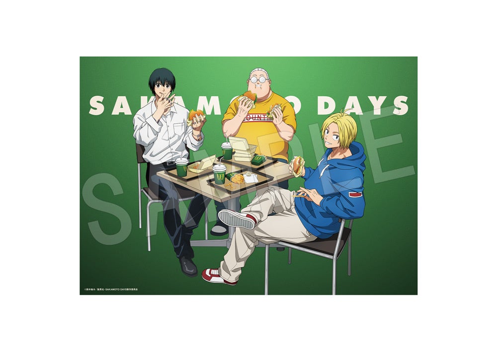 TVアニメ『SAKAMOTO DAYS』より、ハンバーガーを食べる3人の新規描き下ろしアイテムが「ジャンプフェスタ2025」で登場!中外鉱業ブースにて販売決定!