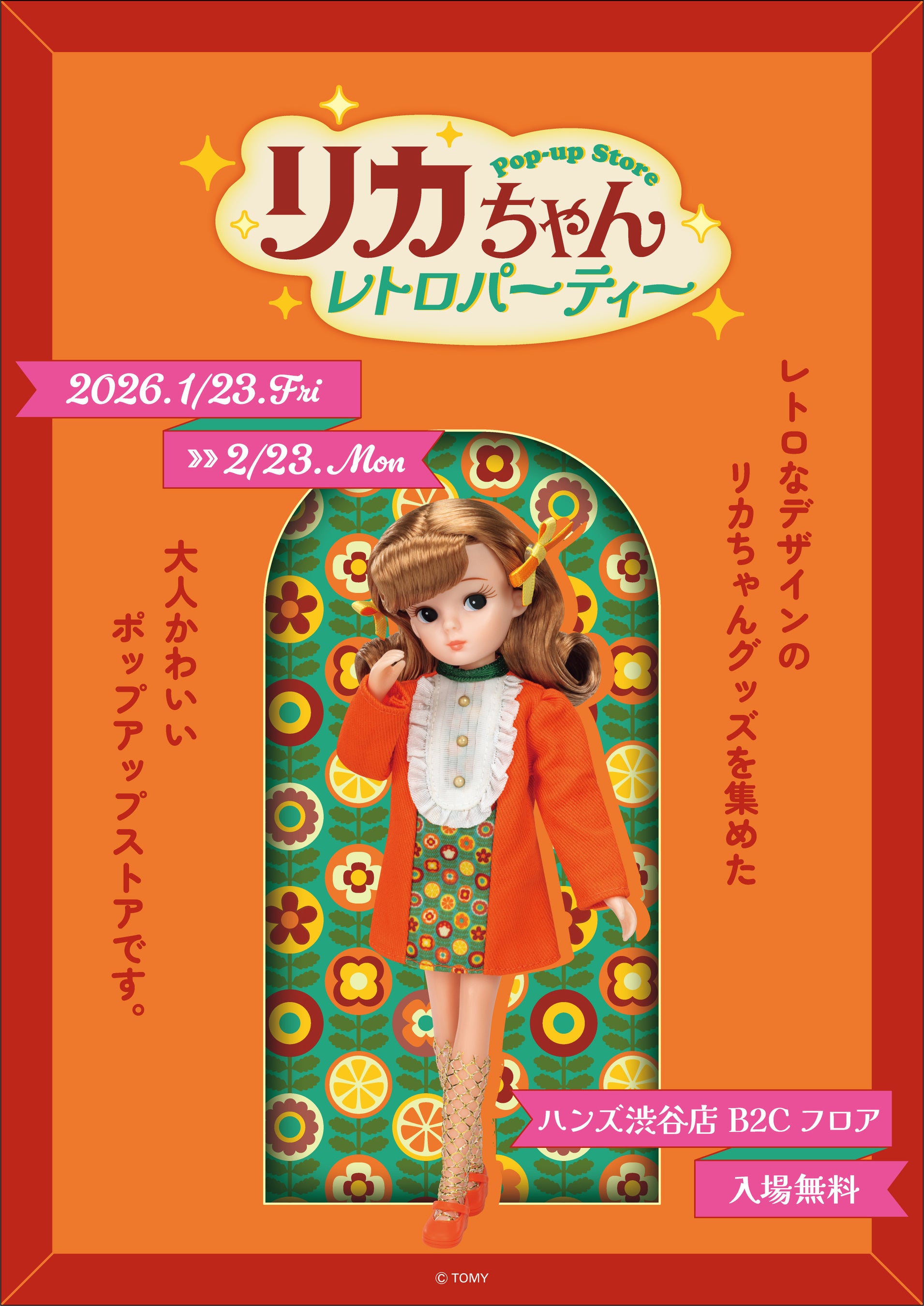 マンガ、アニメ、特撮などを始めとするサブカルチャーをテーマとした企画展を開催・運営している株式会社CRAZY BUMPは2026年1月23日(金)よりハンズ渋谷店 B2Cフロアにて開催する【リカちゃん POP-UP STORE レトロパーティー】の情報を公開致します。