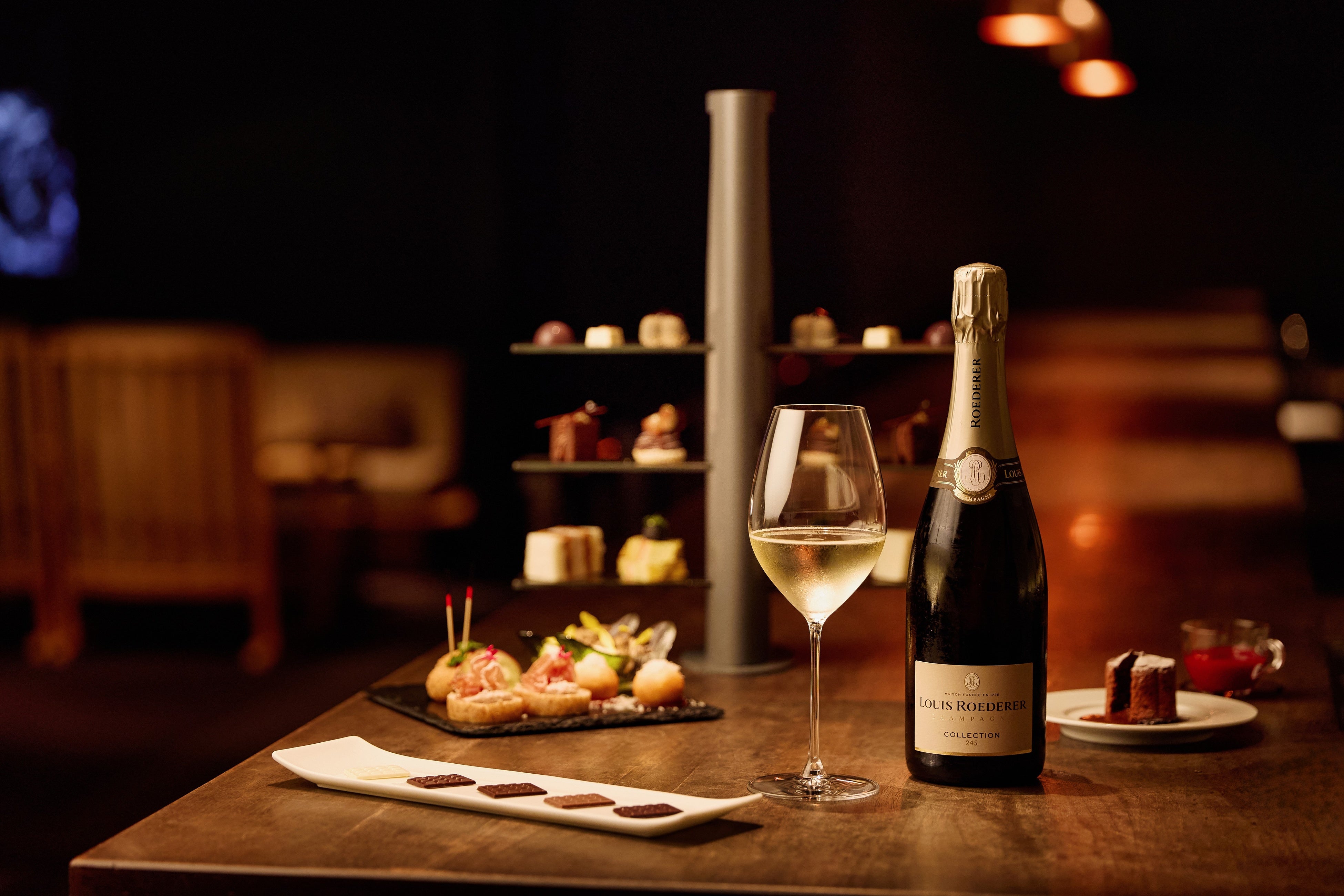 また、ナイトタイムにはTHE THOUSAND KYOTOで初めてのハイティー「Chocolate Voyage Champagne High Tea」を開催。ルイ・ロデレールを含む3種類のシャンパン、ワイン、生ビール、ウイスキー、そして紅茶などフリーフローとともに愉しみいただけます。フードには、栗とラム酒のボンボンショコラや生ハムのセイボリーを追加し、お酒に合うテイストに変更。さらに、「フォンダンショコラ ラズベリーソース添え」には洋酒を使用し、締めの一品として提供いたします。秋の夜長に大人の優雅なひとときをお過ごしください。