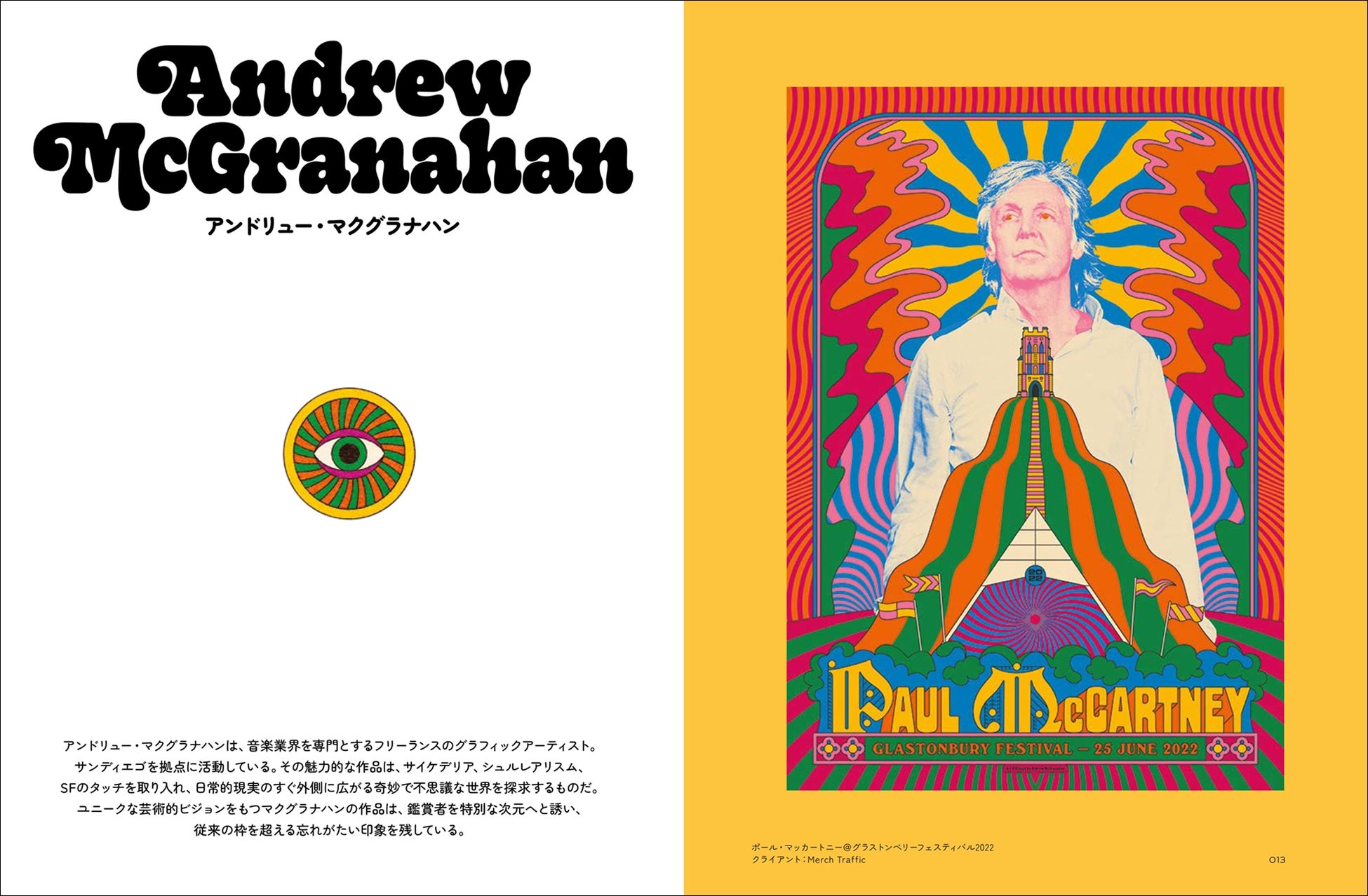 1960~70年代のヒッピー・カルチャーをバックボーンとするペイズリーモチーフや花柄。あるいは精神を別次元への旅へいざなうサイケデリックな視覚表現。このデザインの革命に強い影響を受け、オマージュを捧げる現代のグラフィックデザインのリファレンス集。