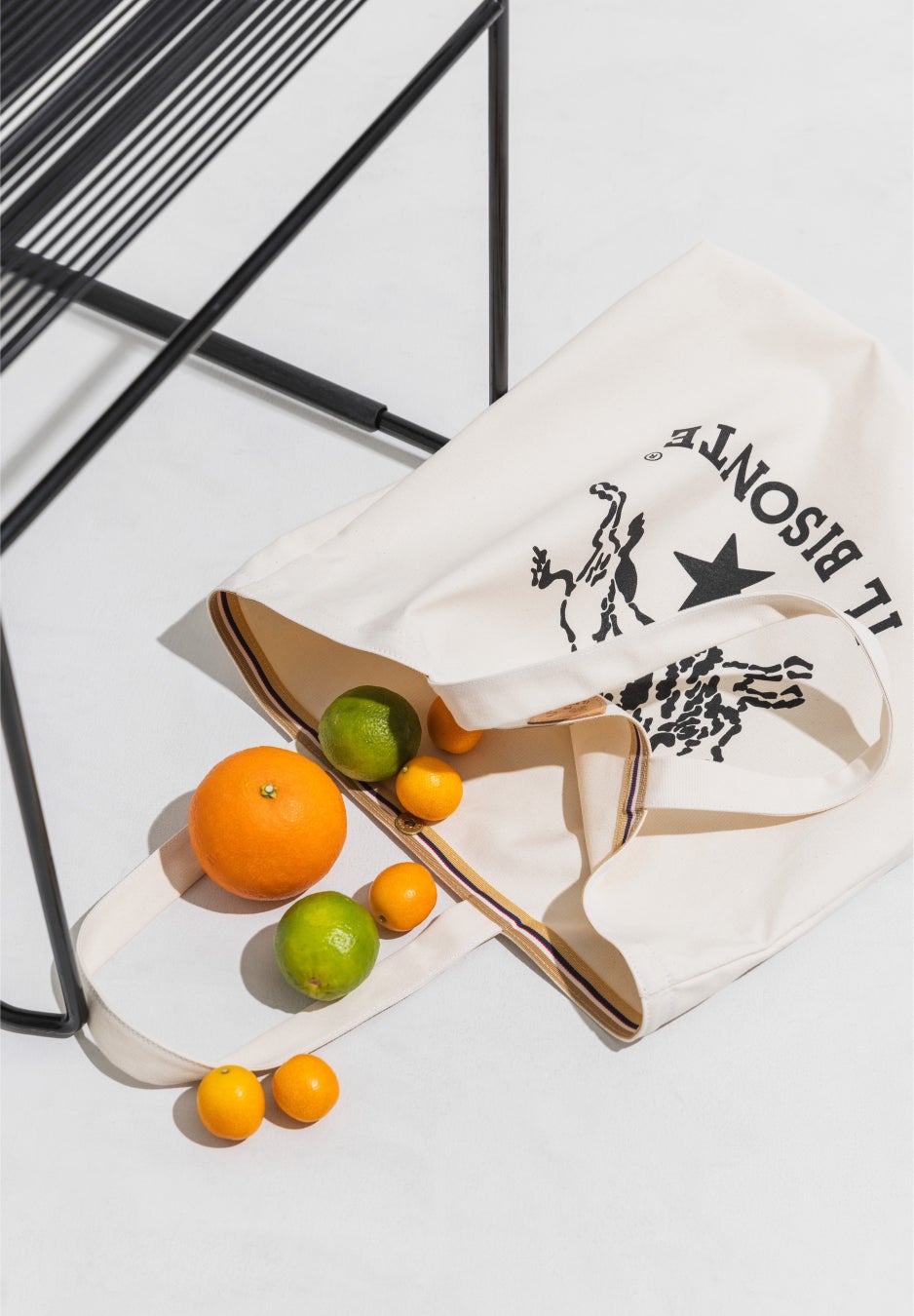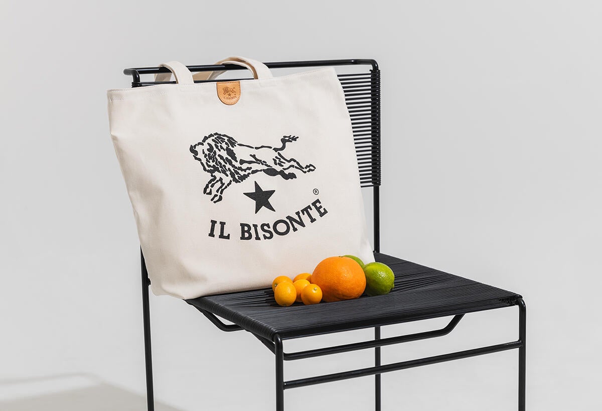 創業当時から、レザーとともにイル ビゾンテを象徴する素材「コットンキャンバス」を使用。