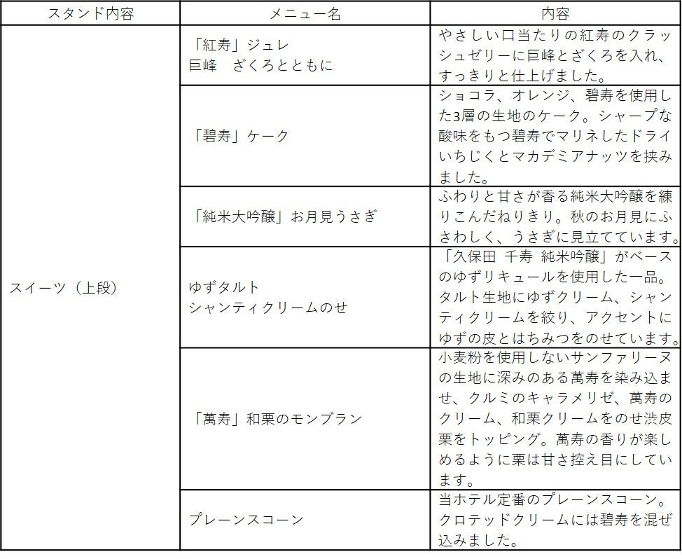 また、当ホテル定番のプレーンスコーンには、上品な口当たりをお楽しみいただける、うまみとキレが特徴の「久保田 碧寿」を混ぜたクロテッドクリームを付けてお召し上がりいただきます。