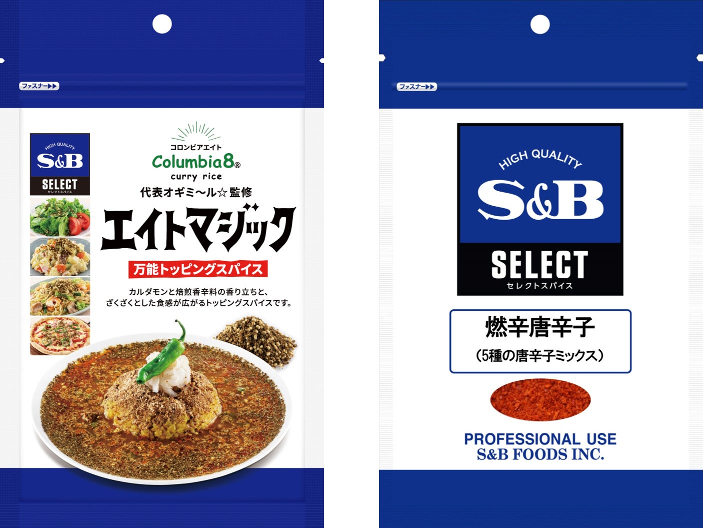 エスビー食品株式会社は、多様なニーズにお応えする業務用セレクトスパイスシリーズから、Columbia8代表オギミ~ル☆氏監修の万能トッピングスパイス「エイトマジック」と、厳選された5種類の唐辛子をブレンドした「燃辛唐辛子(5種の唐辛子ミックス)」を新発売します。