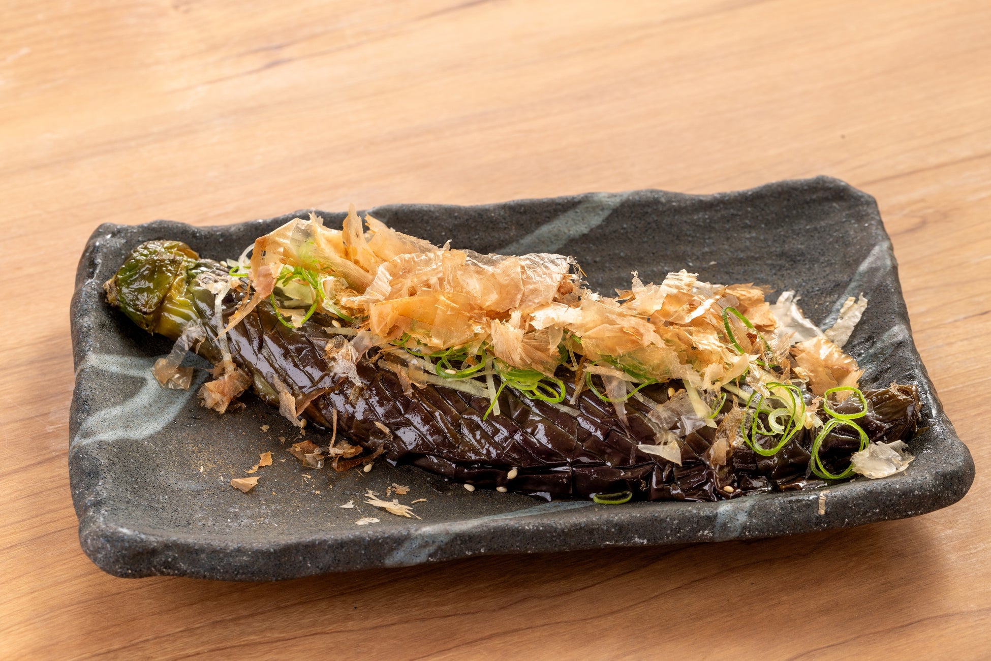 揚げナスをだし汁に漬け込み冷やすことで、柔らかな舌触りとナスの旨味が楽しめるつかだ食堂の夏の代表メニューのひとつです。