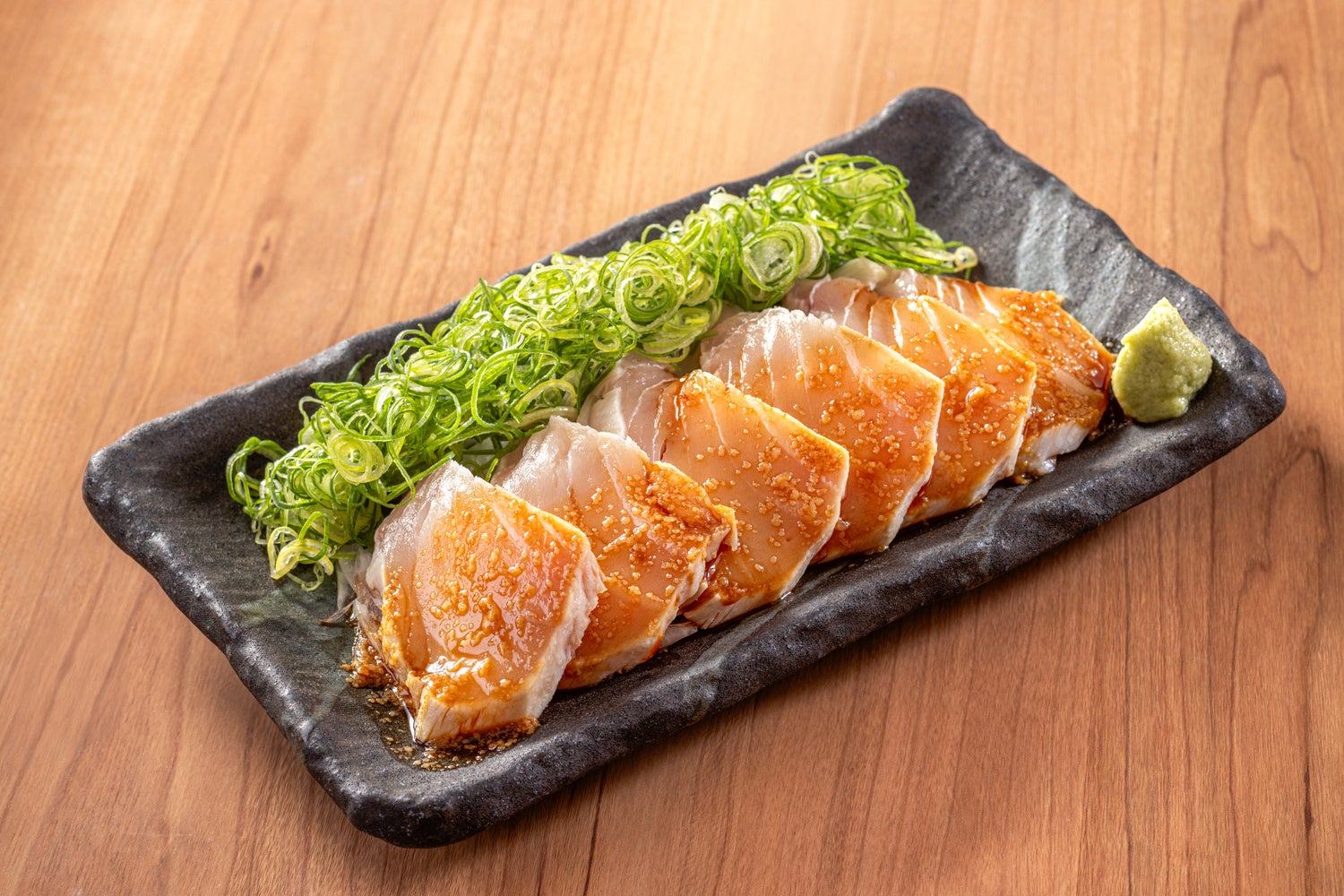 トロのように口の中でとろけるような食感と味わいの「とろびんちょう」のたたきに、コクと甘味が自慢の自家製の旨醤油ダレをたっぷりとかけ、九条ネギを添えました。