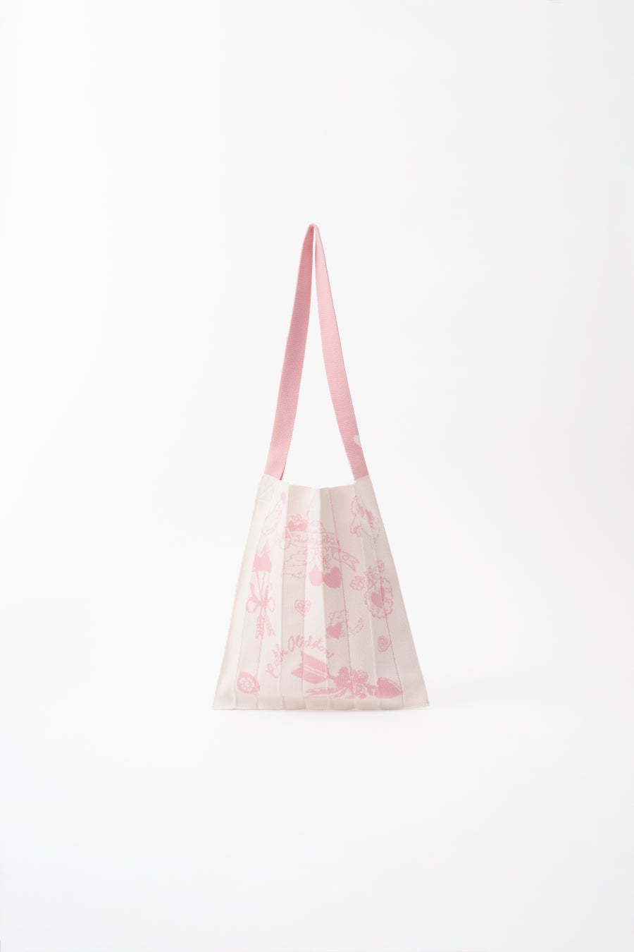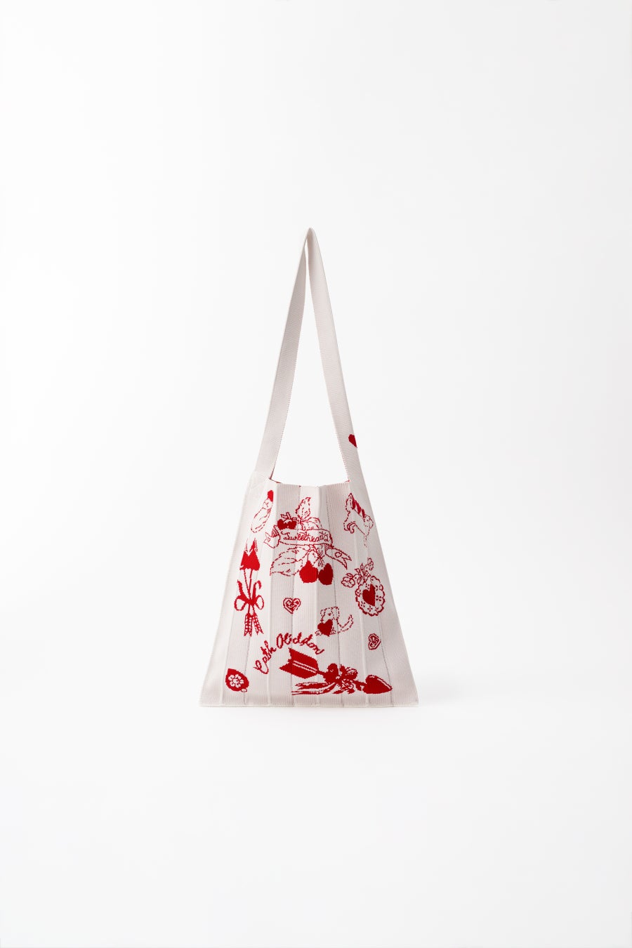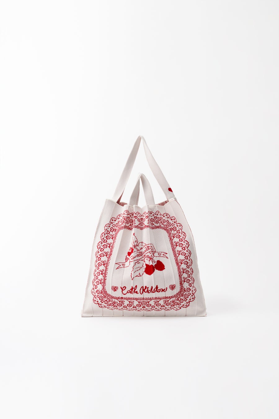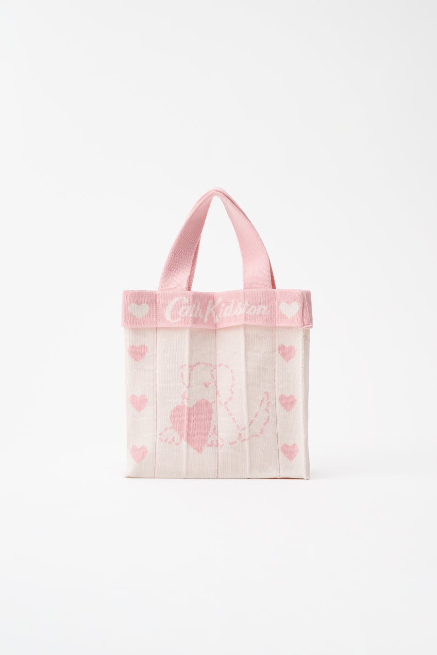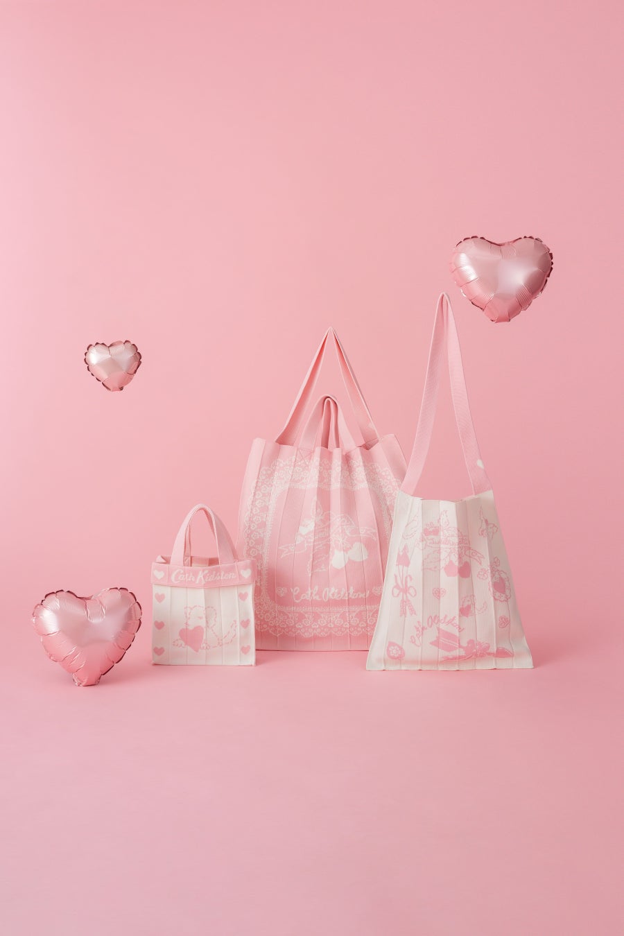 KNT365のバッグはリサイクルされたペットボトルの糸から自社工場を中心に国内で生産。ニットのほどよい伸縮性はありますが、伸びきって元に戻らなくなることはほとんどありません。汚れたり、たくさん使ったりしたあとは自宅で洗濯していただくことで、綺麗に長くお使いいただけます。ニットのため、畳んで持ち運べるので旅先のバッグとしてもおすすめです。日々のお出掛けから、旅のお供まで、365日いつでもどこでも、気軽に使えるKNT365のバッグに、Cath Kidstonらしいバレンタインデーにふさわしいデザインを落とし込みました。