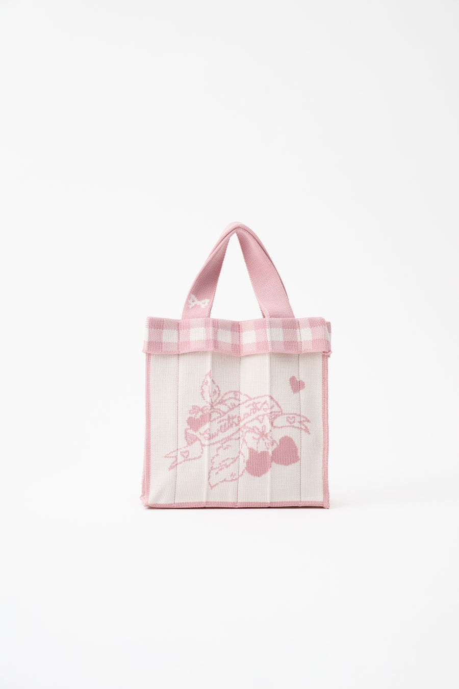 お財布やお弁当箱、水筒など小物を入れておくのにとても便利なコンパクトサイズのニットバッグ。