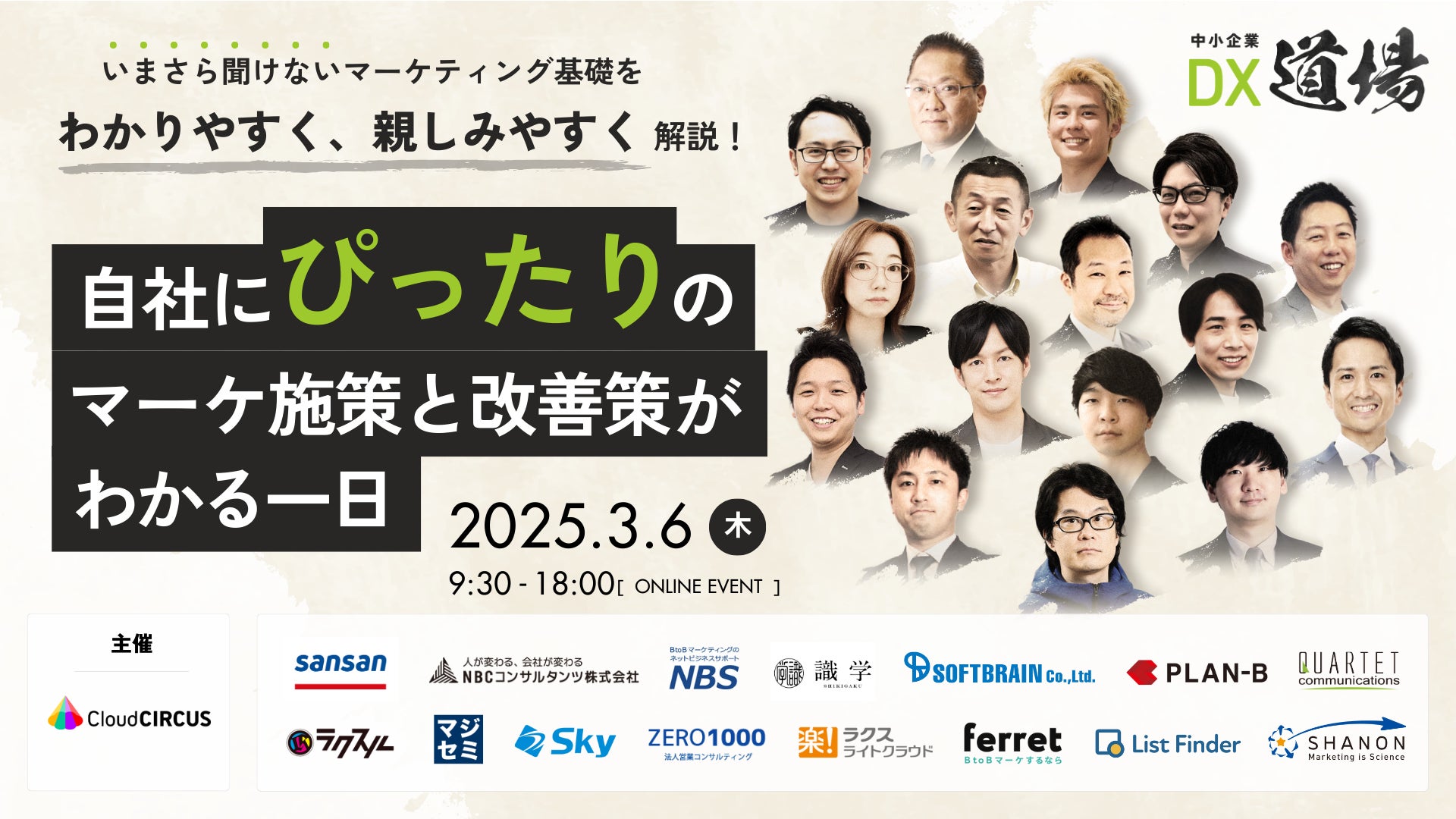 ベーシック、3/6(木)9時30分よりクラウドサーカス社主催のカンファレンス「中小企業DX道場~自社にぴったりのマーケ施策と改善策が分かる1日~」に登壇