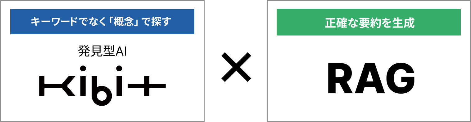 自社開発AI「KIBIT(キビット)」独自の自然言語処理アルゴリズムにより、時代や部署によって形式の異なる非構造化(未整理)データを解析できることに加え、概念検索*1を用いて、類似性・関連性の高い内容を的確に検出します。また、RAG*2機能によって、生成AIを搭載したQ&Aシステムで課題とされるハルシネーション*3のリスクを回避し、信頼性のある最適解を導きます。
