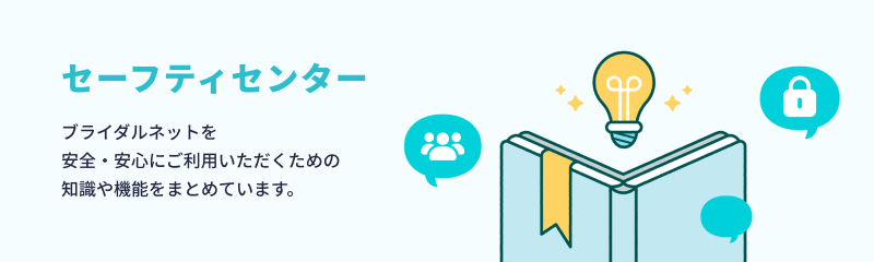 電話認証の導入と合わせて、ブライダルネットでは安心してご活動いただくための知識や機能をまとめたセーフティセンターを設置いたしました。セーフティセンターでは、「お相手と直接会う際のガイドライン」「悪質ユーザーの見分け方」「コミュニティガイドライン」といった安全にサービスをご利用いただくための知識のご案内と「登録するのが不安」「お相手に信頼してもらう」「嫌な思いをした」といった場合に活用していただく機能・問い合わせ先のご案内をしております。