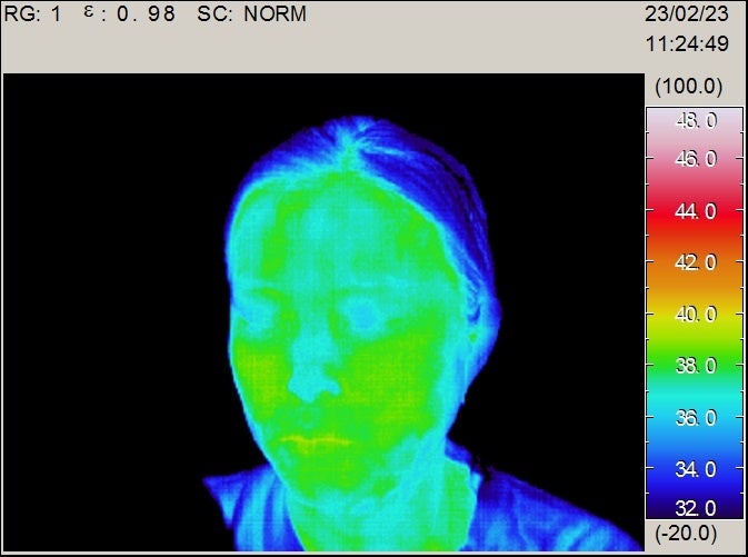 ・サーモグラフィ画像は被験者3名のうち1名の結果