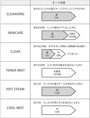 ダブル温スチームが5分発生→化粧水ミストが1分20秒発生