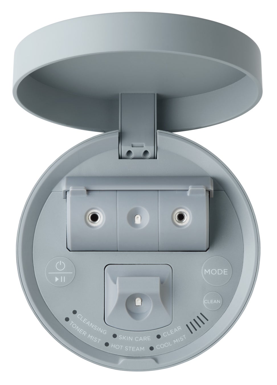 2つの吹出口からでる細かく高密度な温スチームが顔全体を包み込むように温め、肌温度を約40℃にあげることで、スキンケアに適した状態に導きます。