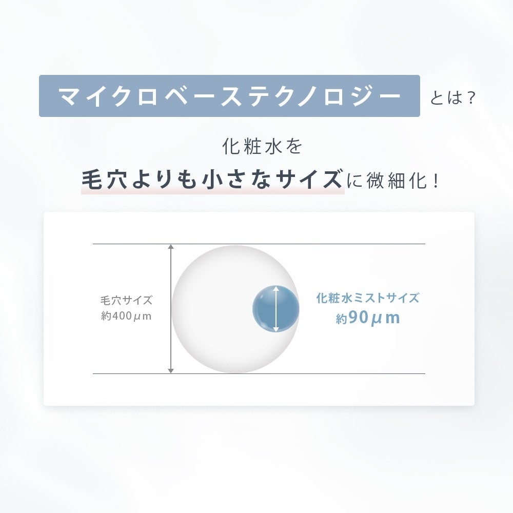 お手持ちの化粧水を入れて使用することができる、化粧水ミスト機能を搭載しています。 毛穴よりも小さなサイズに化粧水を微細化する独自の「マイクロベーステクノロジー」で肌にとけこむように美容液成分が浸透[*2]しやすくなり、もっちりとしたハリ感あふれる肌に導きます。