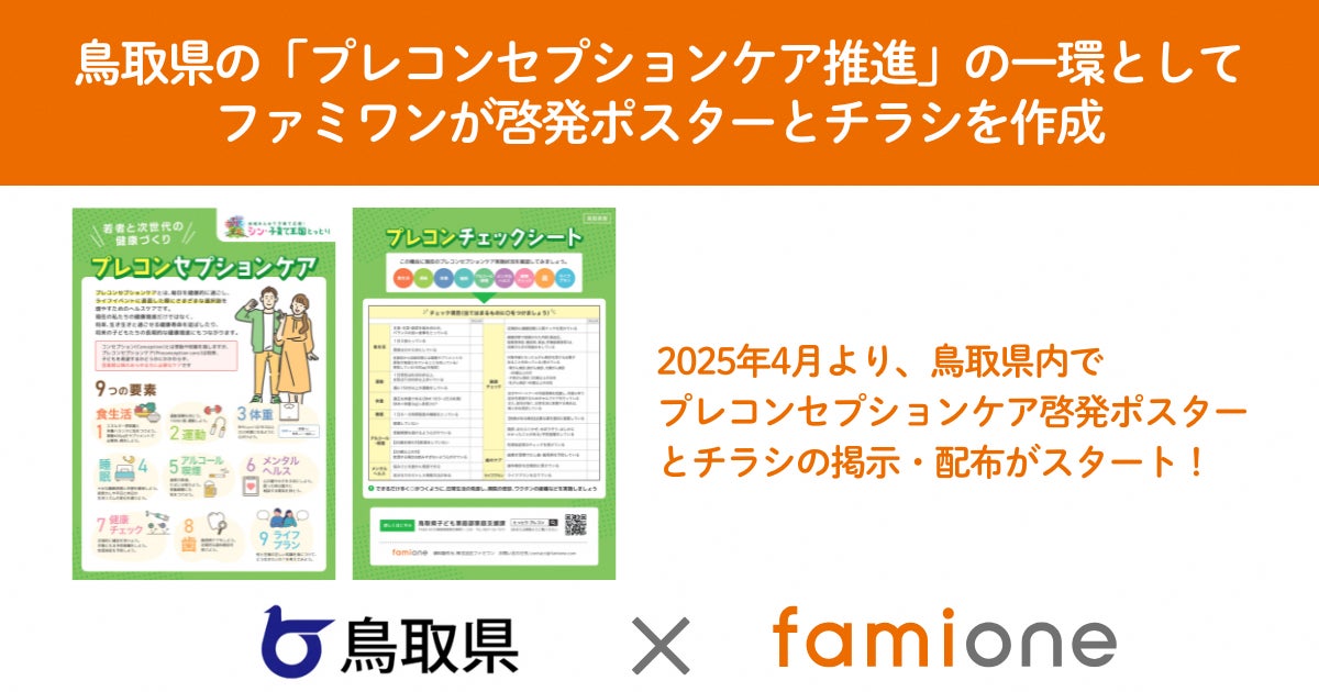 「子どもを願うすべての人によりそい 幸せな人生を歩める社会をつくる」をビジョンに掲げ、法人の従業員向け福利厚生や自治体の住民向け支援を行うヘルスケアサポートサービス「ファミワン」 https://famione.com/benefit/などを展開する株式会社ファミワン(本社:東京都渋谷区、代表取締役:石川勇介)は、鳥取県(県知事:平井伸治)のプレコンセプションケア推進の一環として、若者と次世代の健康づくりを目的としたプレコンセプションケア啓発チラシ及びポスターを作成担当し、県内の産婦人科や駅などの公共施設にて配布・掲示が開始されました。