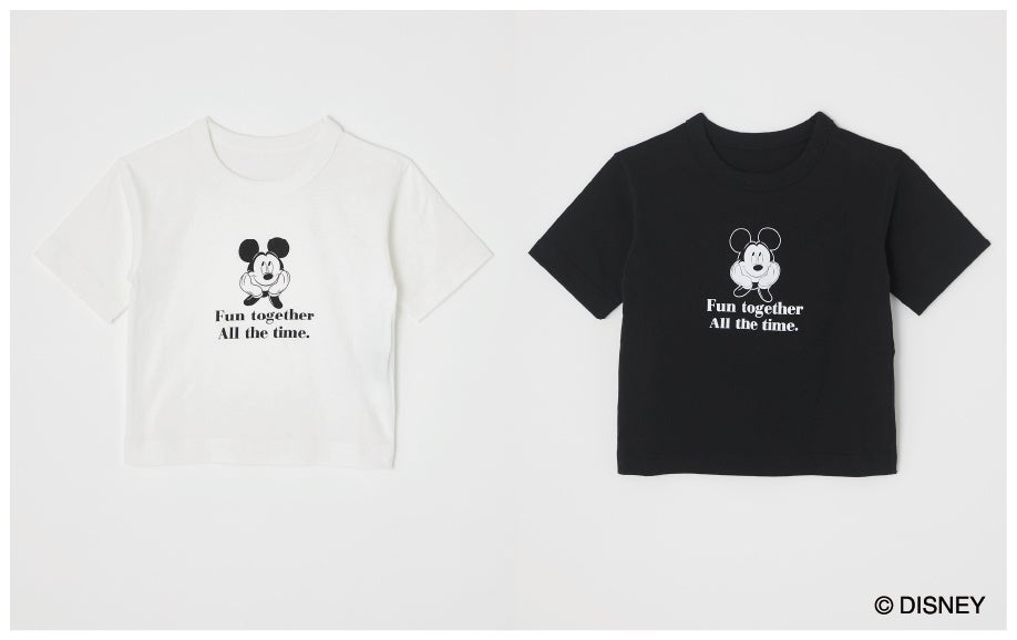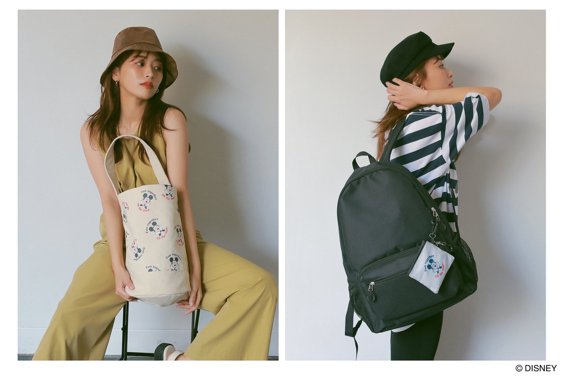 今回のコレクションは、AZUL BY MOUSSYのシグネチャーアイテムであるデニムを着用したミッキーデザインや、「Fun together All the time.」のメッセージととも愛らしいミッキーがプリントされたアパレル、AJUGA.で大人気のマザーズバッグやバックパック、マルチポーチを中心とした雑貨など、計12型を展開致します。