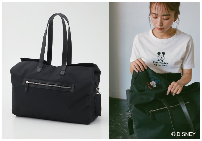 中でも注目のマザーズバッグは、”マザーズバッグ”のネーミングにとらわれず、パパにも使ってただけるように考えられたシンプルなデザインに。今回のAZUL BY MOUSSYとのコラボレーション限定のオリジナルサイズで作成致しました。大容量の3室構造で、メインの入り口の内側には保冷ドリンクホルダーも付いており、さらにはおむつが5枚ほど入れられるミッキーがプリントされたポーチも付属した充実の内容。両サイドにはベビーカーに着脱可能なフック型のループあり、ベビーカーバッグとしても大活躍です。その他にも、小旅行にも最適なアイテムとなっております。