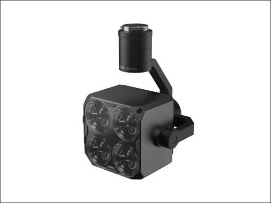 産業用ドローン Matrice 350 RTK/300 RTK に搭載可能なジンバルサーチライトで、4つのレンズで構成された4つのサーチライトが、照射角15度の鋭い光で対象を照らします。最大出力120Wで地上100mから明るさは最大24lux、警察や消防、夜間の捜索救助、送電網などの夜間点検といったニーズを満たします。
