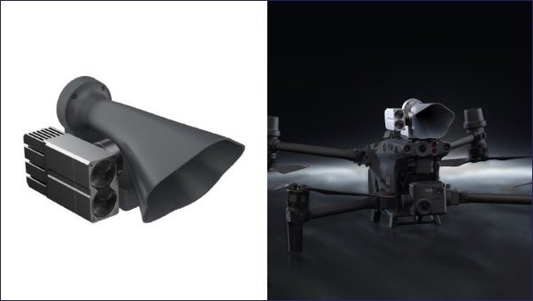 一体型小型産業用ドローン DJI Matrice 30/30T 専用に設計された、サーチライトとブロードキャストを統合したペイロードです。最大 100mの有効照射距離、200mの有効放送距離という高スペックながら、超軽量化・小型化を実現、Matrice 30/30T と一体化するデザインも特徴です。