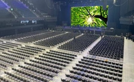 HAPPINESS ARENAはバスケットボールやコンサートなど様々なイベントを開催しており、今回「初」の映画イベントとなります。 最新の音響設備と特大のモンスタービジョンによる映画体験は、通常映画館とは一味違う迫力と臨場感を味わえます。
