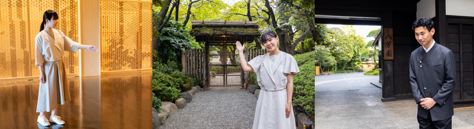 八芳園グループは、パーパス「日本を、美しく。」の実現に向け、2025年9月末まで八芳園全館を一時休館し、庭園とのつながりをより深めるリニューアル工事を進めていました。本改修のリブランディングコンセプトは「日本の、美意識の凝縮」。その思想と呼応し、新ユニフォームでは「日本の美意識を纏う」を掲げ、日々の現場で自然体に“美意識”を体現できる装いを目指しました。