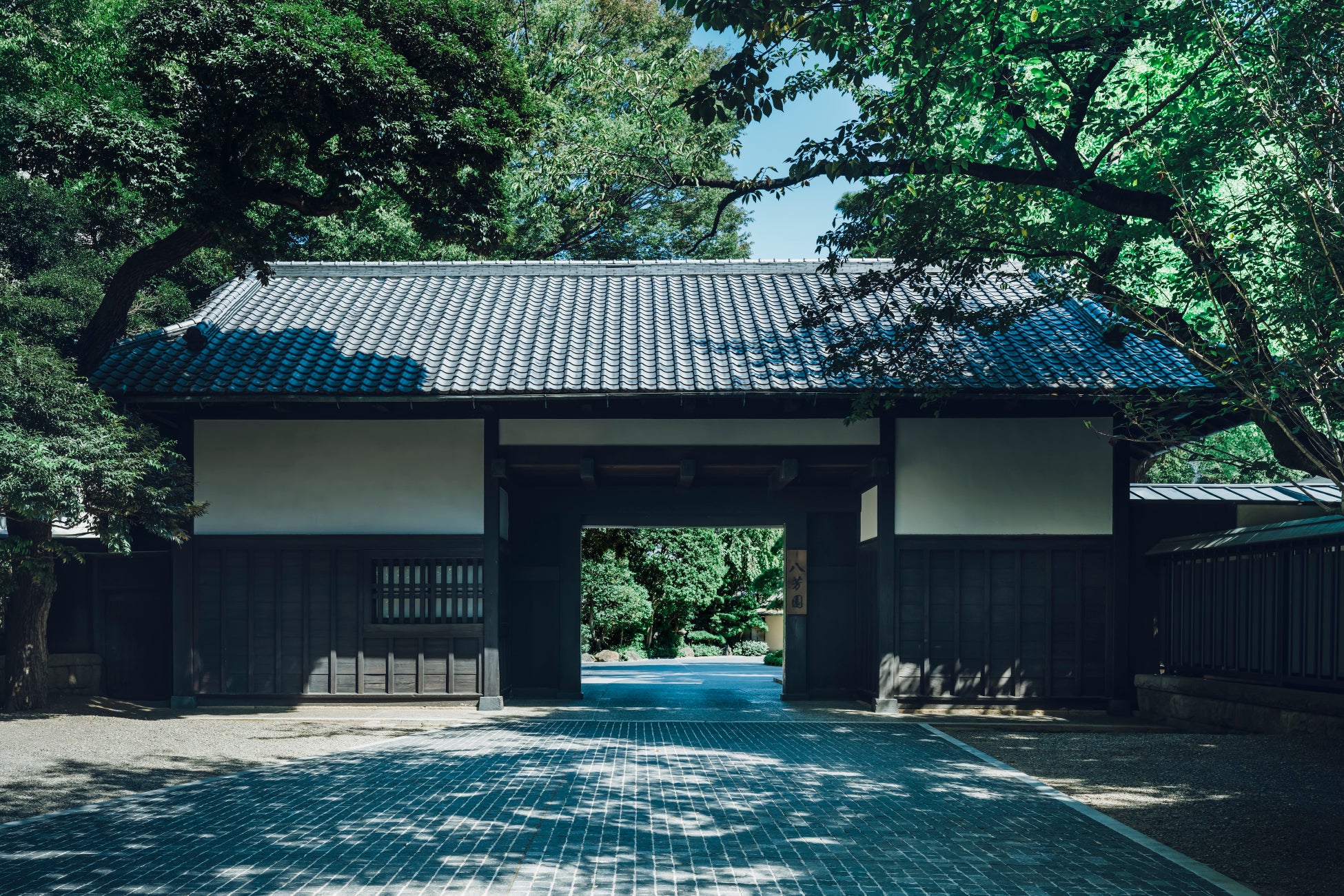 八芳園の正面入り口の門構えは、「大名門」と「庄屋門」の中間様式。厳かな雰囲気と優美さを兼ね備えるその姿でお客さまをお迎えします。