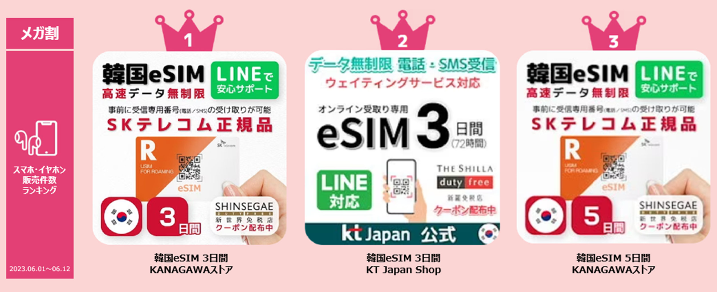 <スマホ・イヤホン>1位 SK テレコム 韓国eSIM