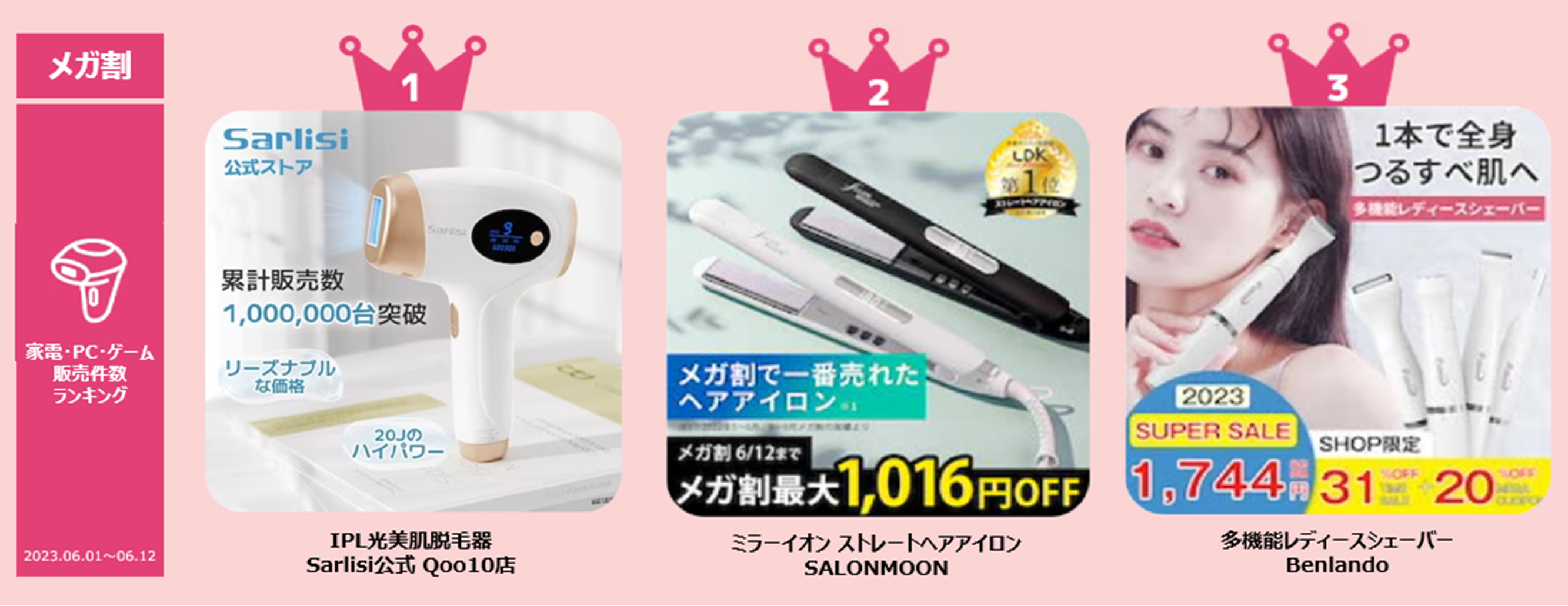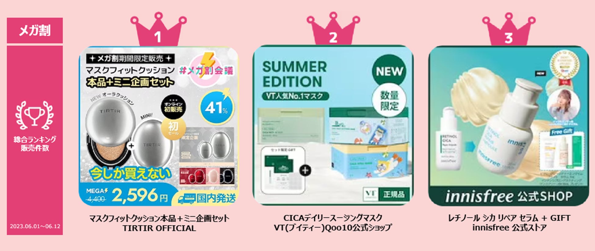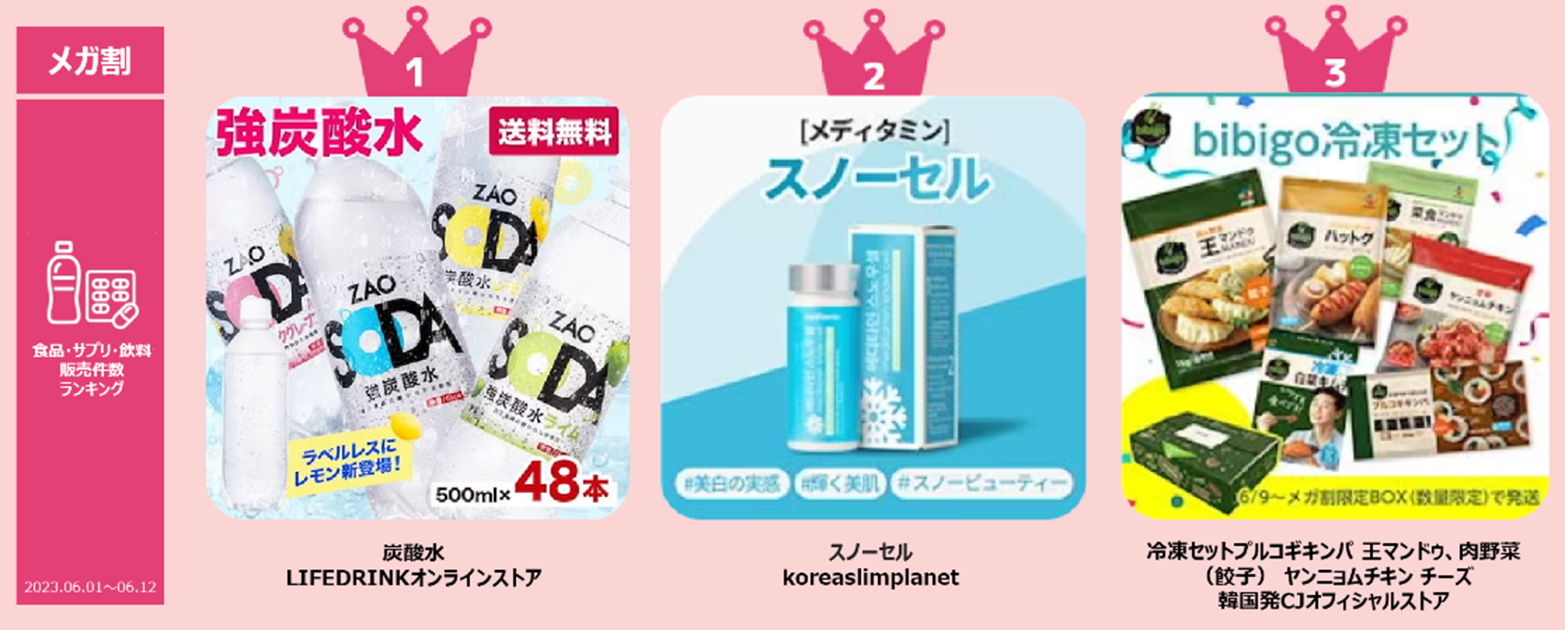 ■メガ割ランキング(期間:2023年6月1日~6月12日)