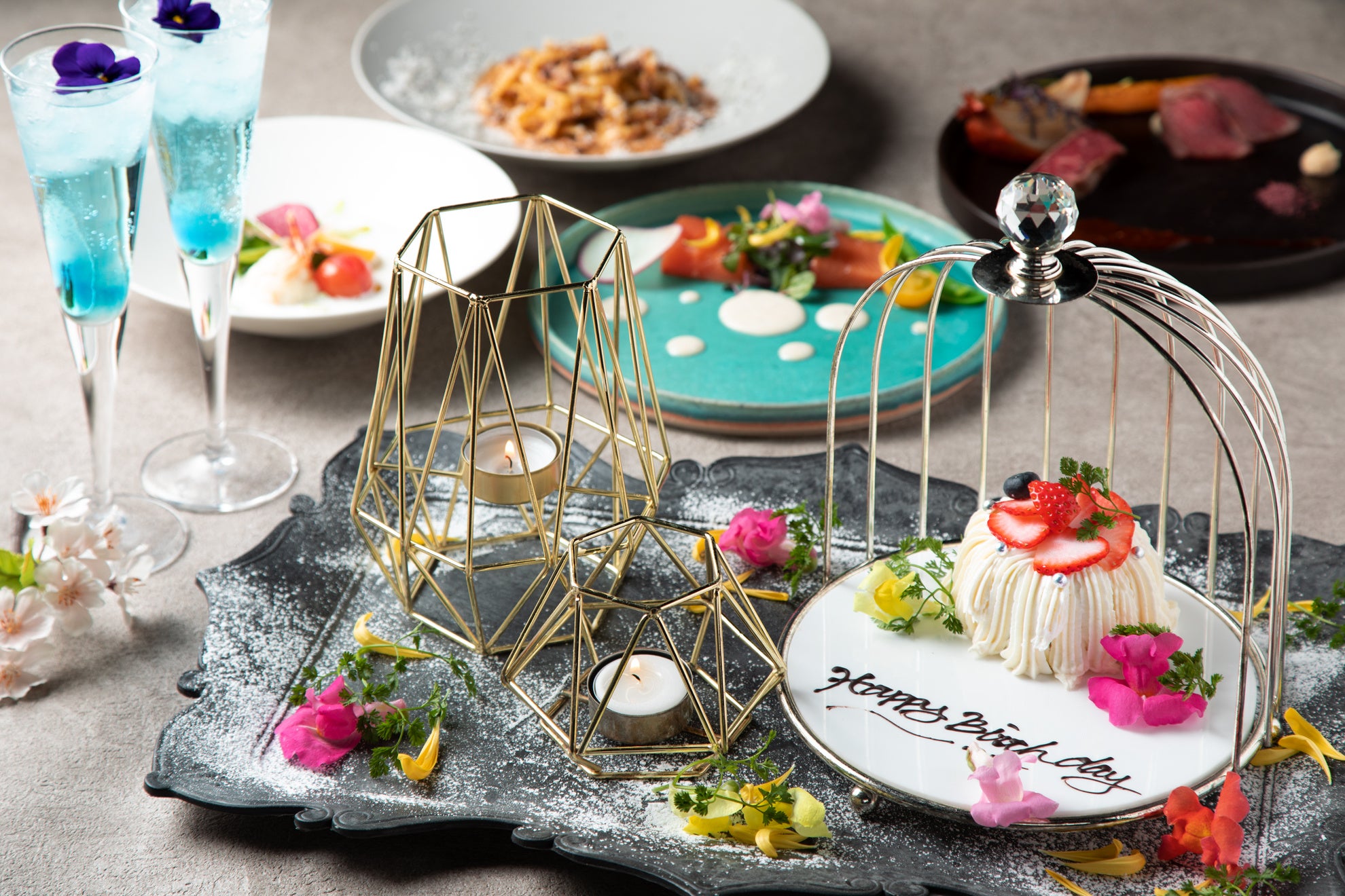 - 通常コースデザートをBlue Bird特製 記念日ケーキに。
