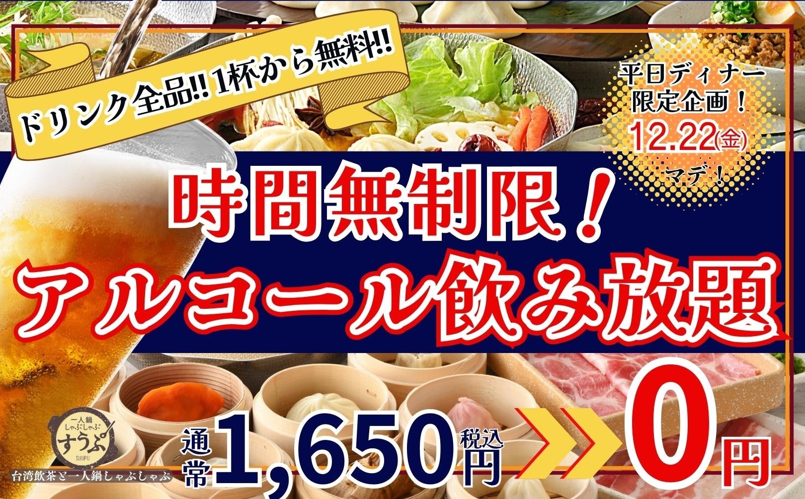 【嬉しい時間無制限‼全品1杯から無料‼】12/22迄の平日ディナー限定!台湾飲茶と一人鍋しゃぶしゃぶが楽しめる“すうぷ静岡パルコ店”にてアルコール飲み放題が無料で楽しめるお得な食べ飲みコースが登場!