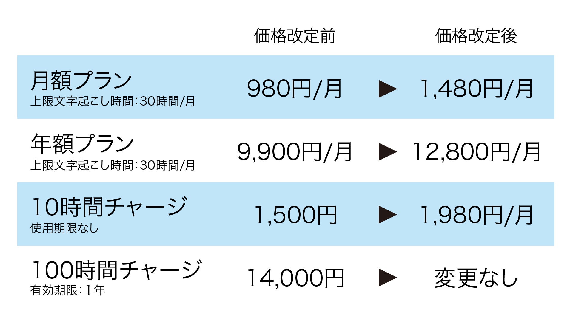 本日より、「オートメモ Home」リリースによる機能拡充に伴い文字起こしプランの新規ご利用料金を以下の通り変更いたします。