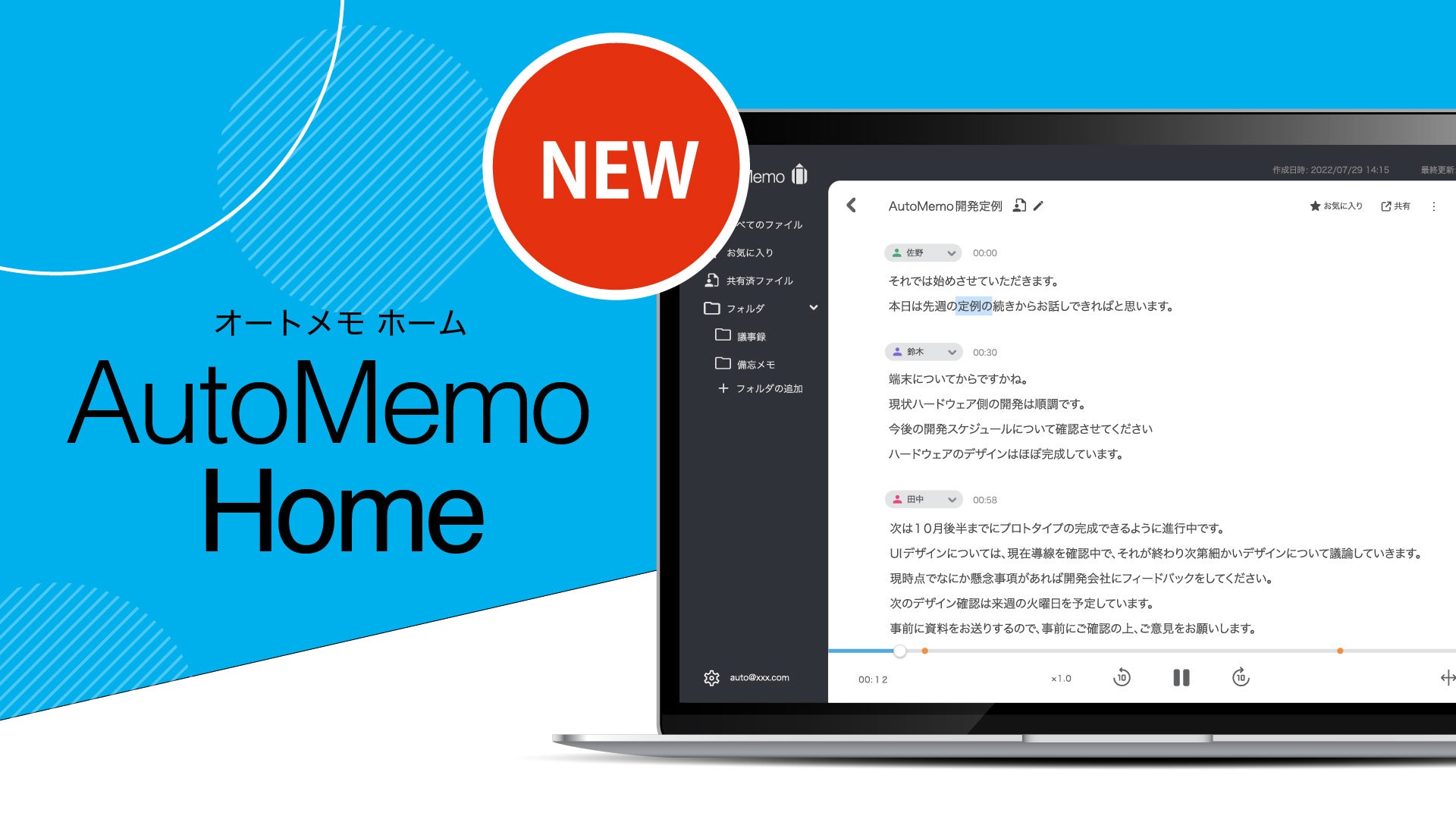 文字起こしAI AutoMemo(オートメモ)より編集ができるwebアプリ「AutoMemo Home」 8月1日(火)リリース