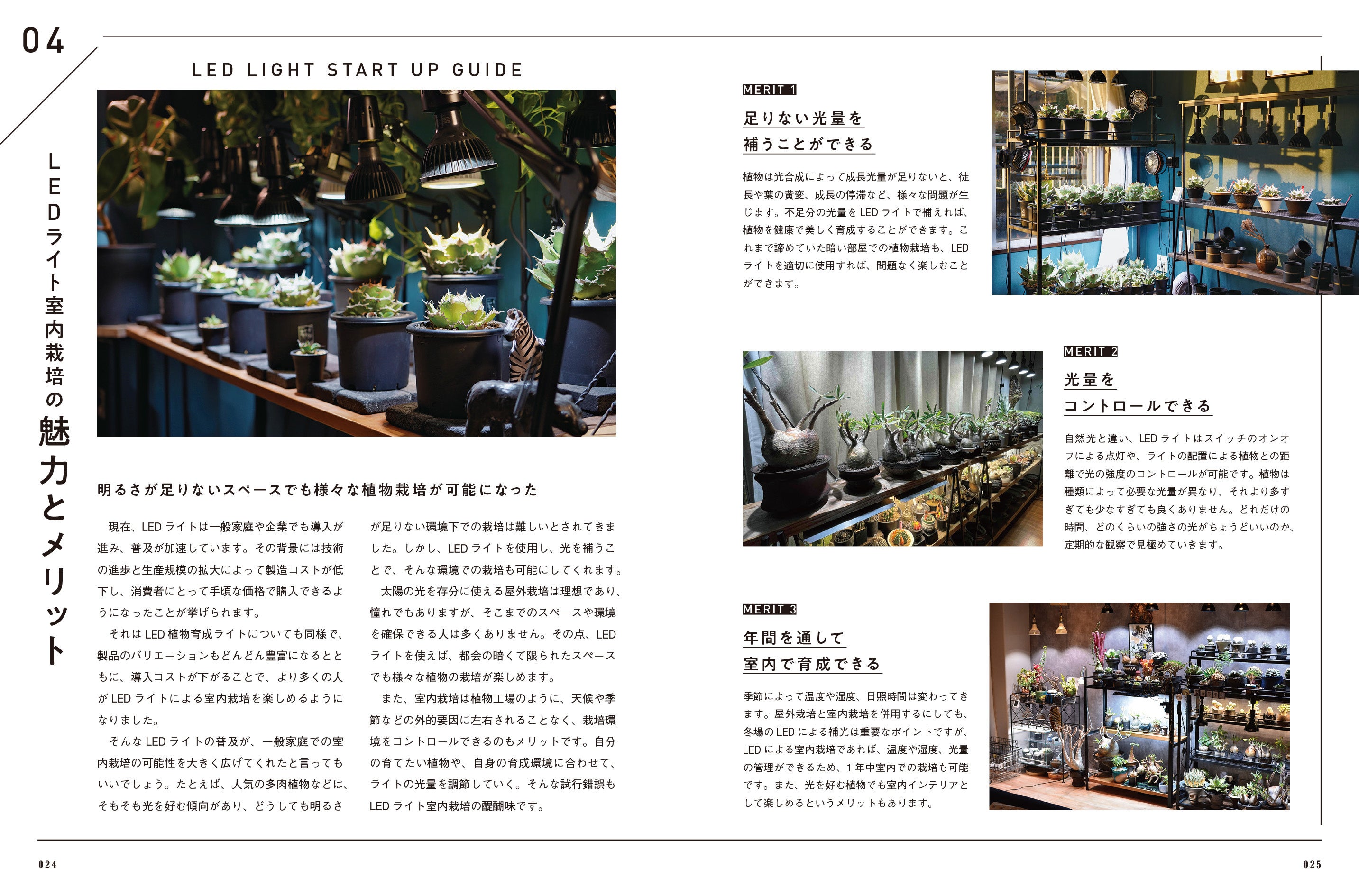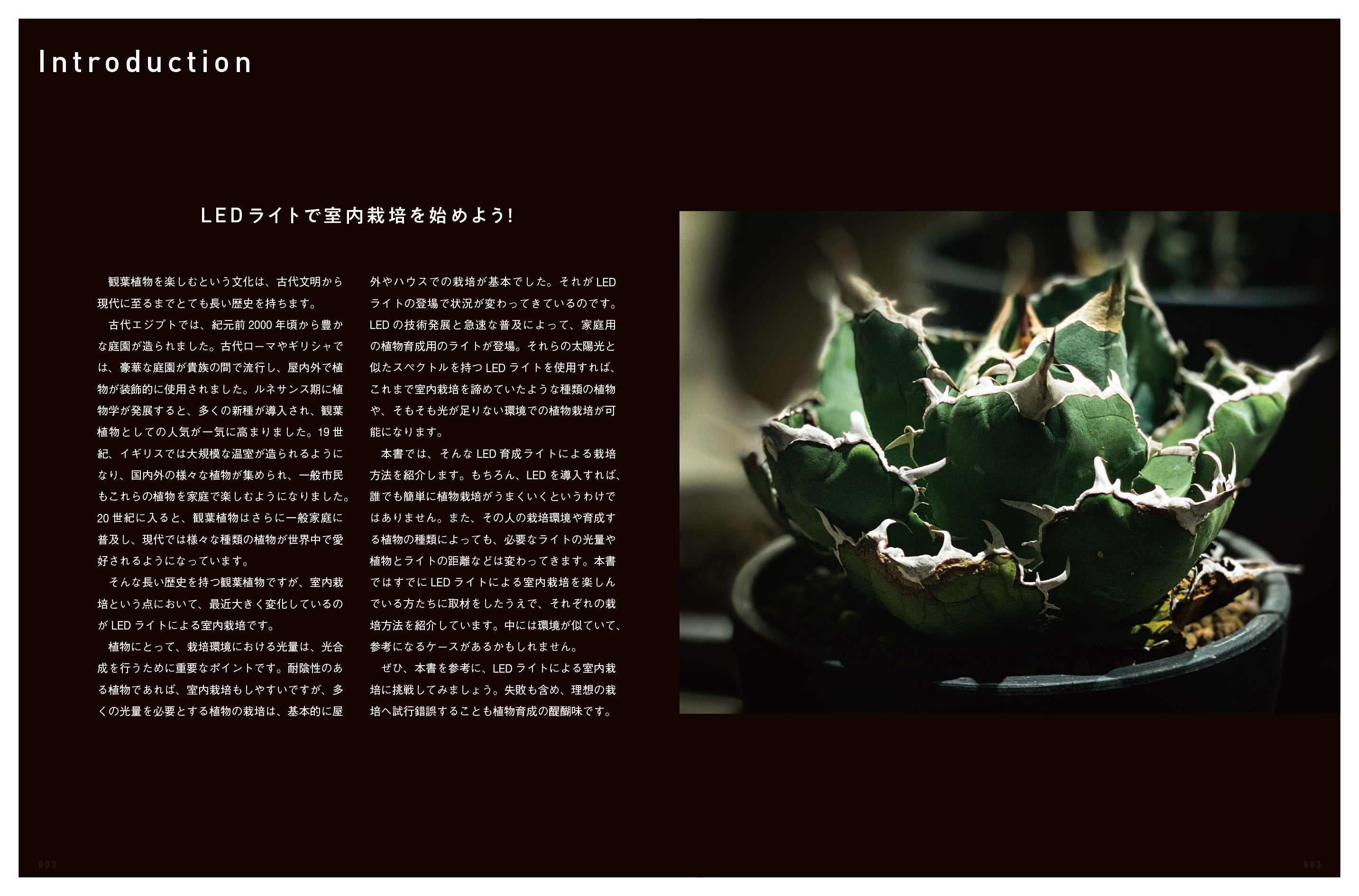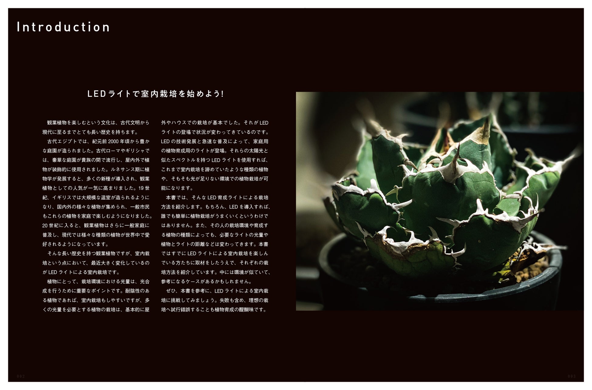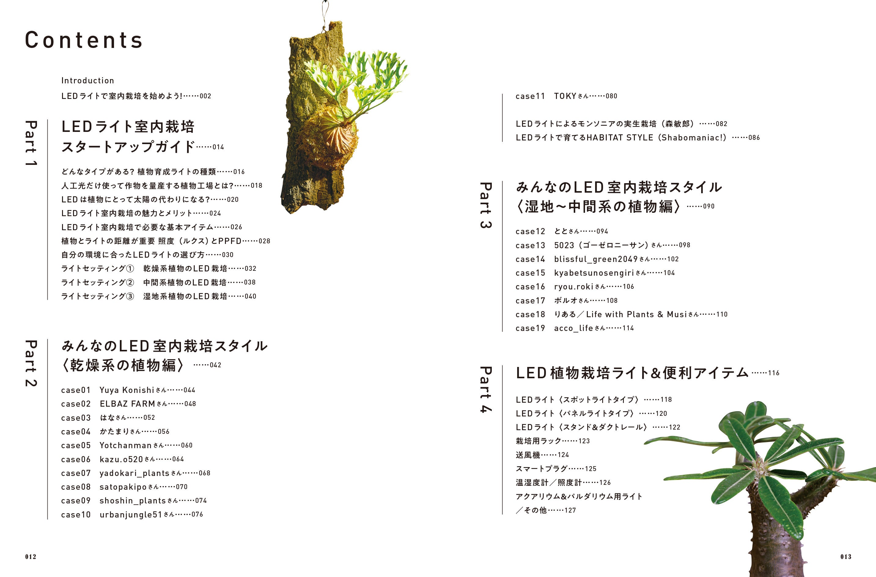 湿地帯と乾燥地帯の植物に章をわけ、LED栽培に向いた植物や育成のコツ、効果的な使用法を解説します。