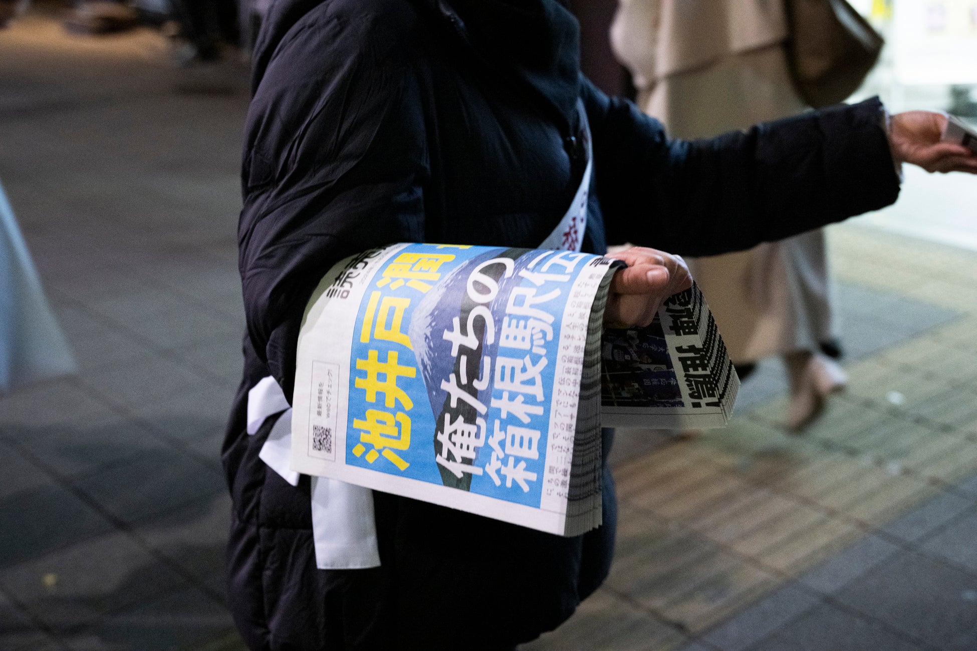 『俺たちの箱根駅伝』新聞が配布された「JR有楽町駅」(12月10日/東京・千代田区)