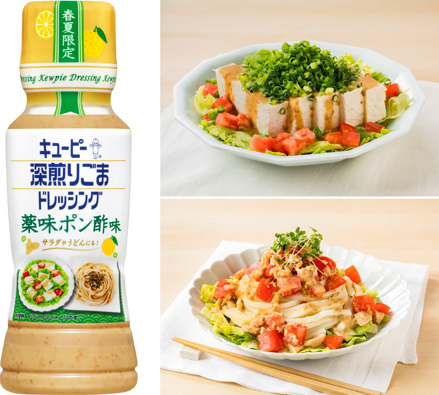 キユーピー 深煎りごまドレッシングの季節限定品「薬味ポン酢味」「旨辛ラー油」の2品を新発売!これ1本でサラダにもうどんにも!“深ごま”に新たな選択肢