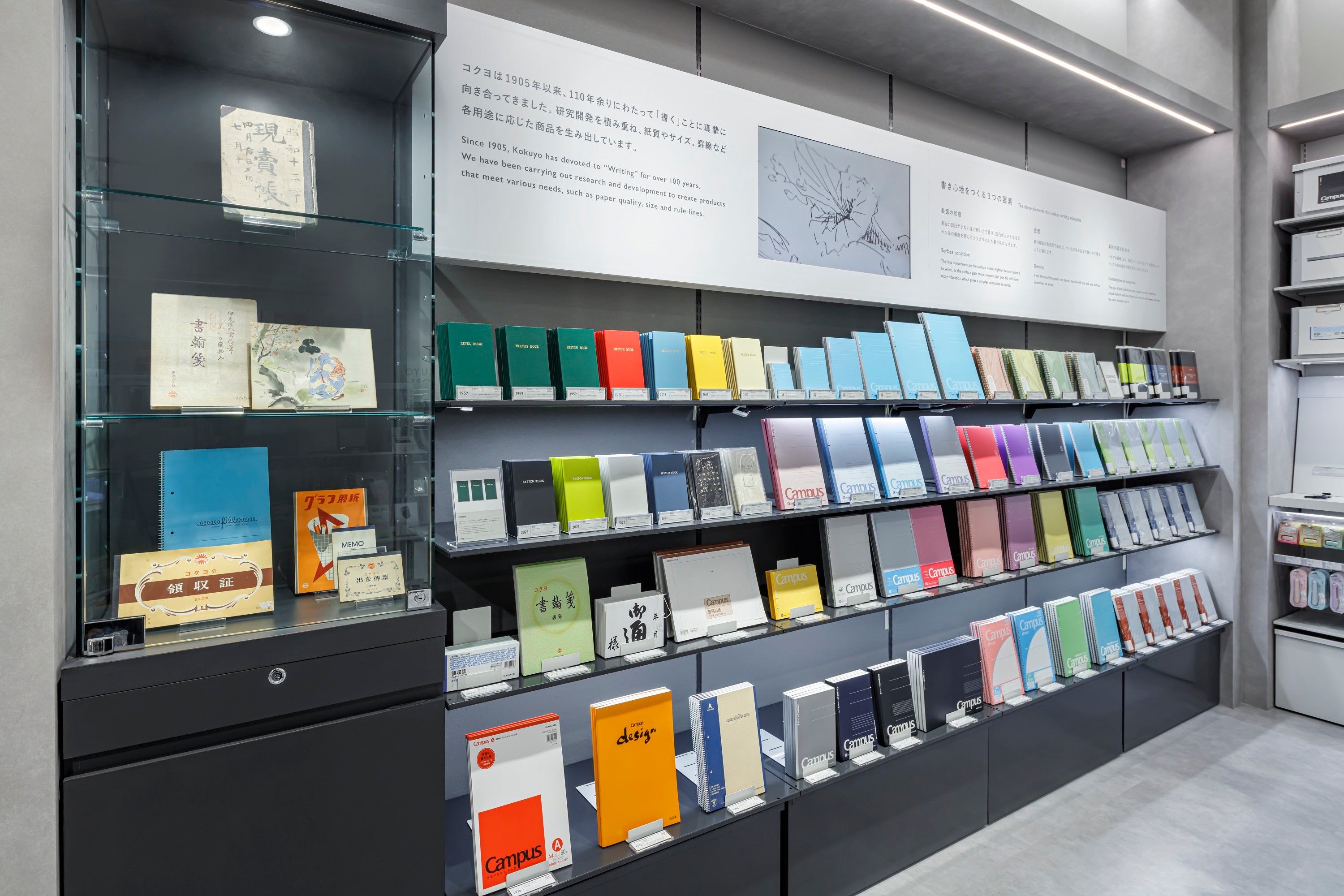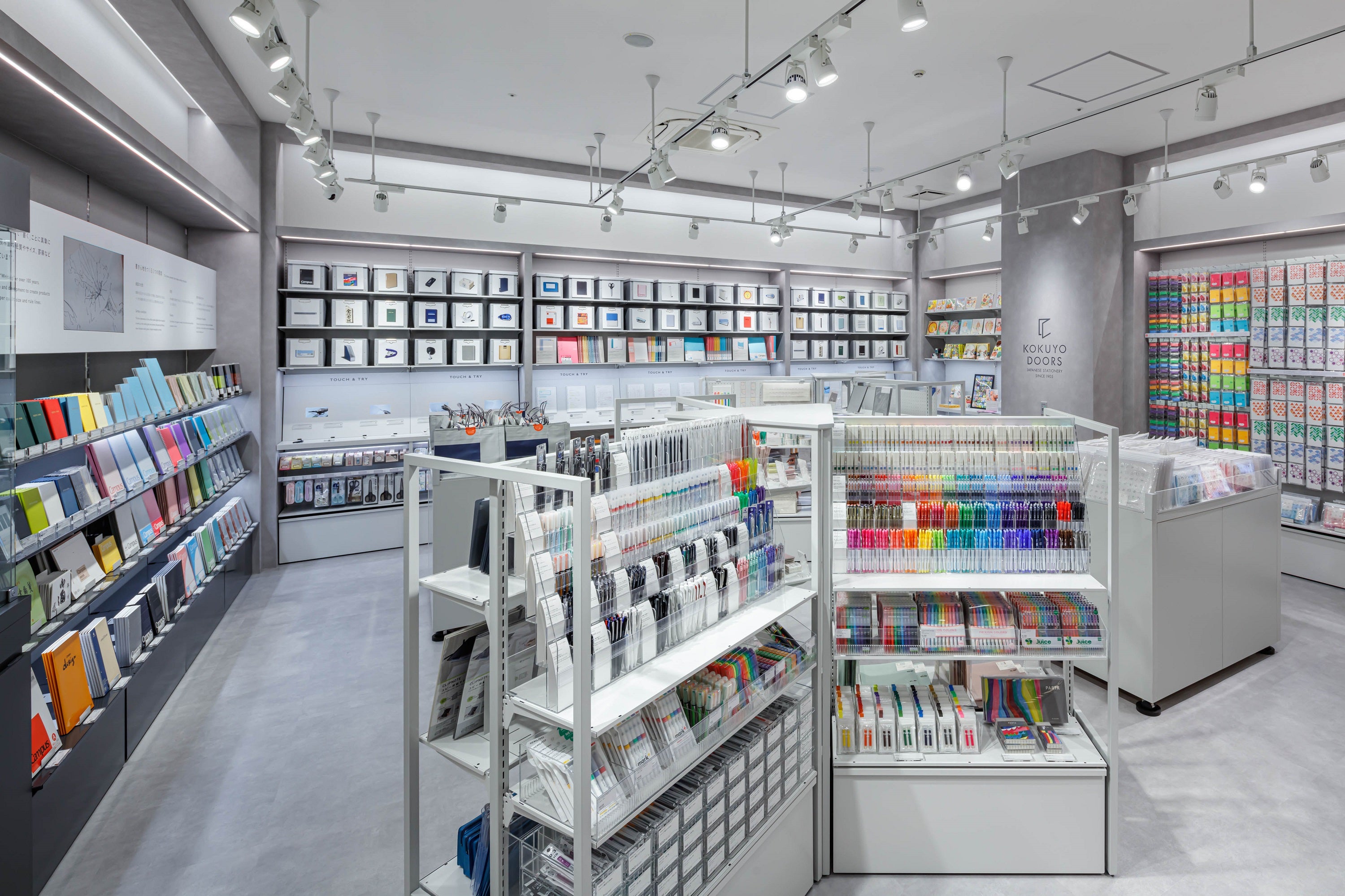 店内では、コクヨの定番かつ人気の文具に加え、ショップのロゴや旅のモチーフをあしらったオリジナルアイテム、海外の方へのお土産やちょっとしたプレゼントにもぴったりなギフトセット等を取り扱います。また、さまざまな文具の使い心地を気軽に試せるコーナーや、ユニークな文具セットを購入できる自動販売機といった、体験型のコンテンツもご用意しました。