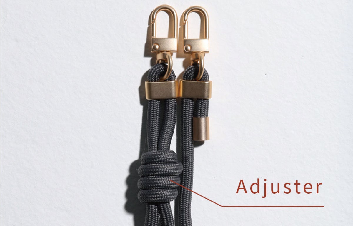 最長160cmまで長さ調節可能。紐を引っ張ることで簡単に調節できます。