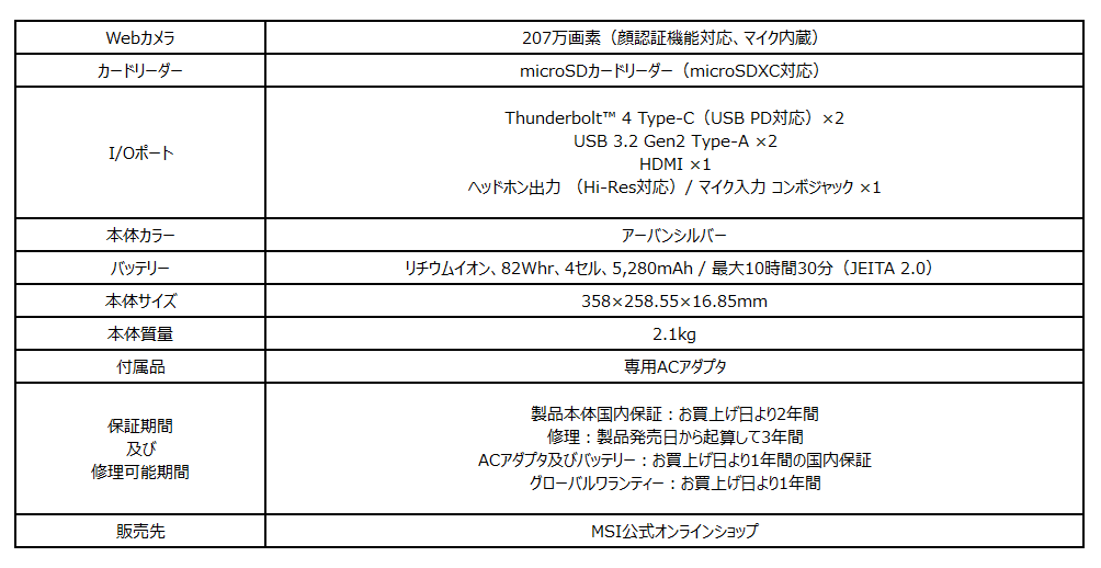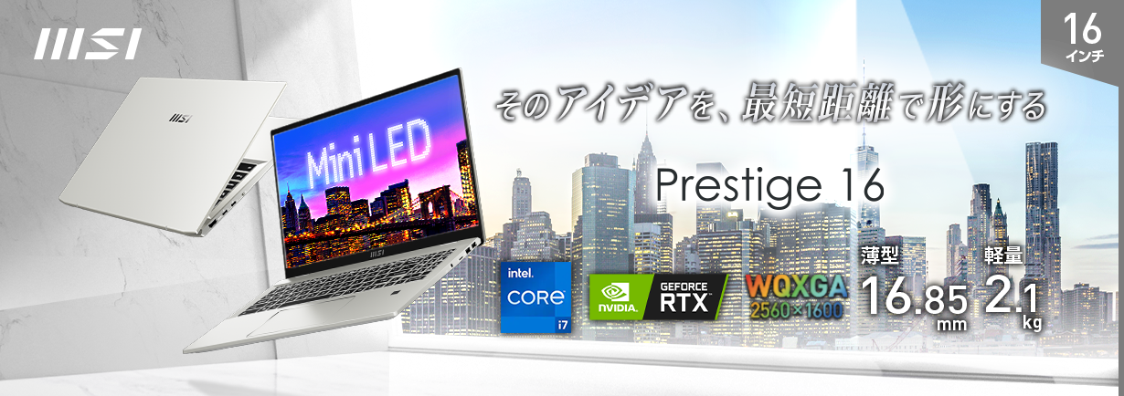・Prestige 16 A12Uシリーズ製品ページ: https://jp.msi.com/Business-Productivity/Prestige-16-A12UX