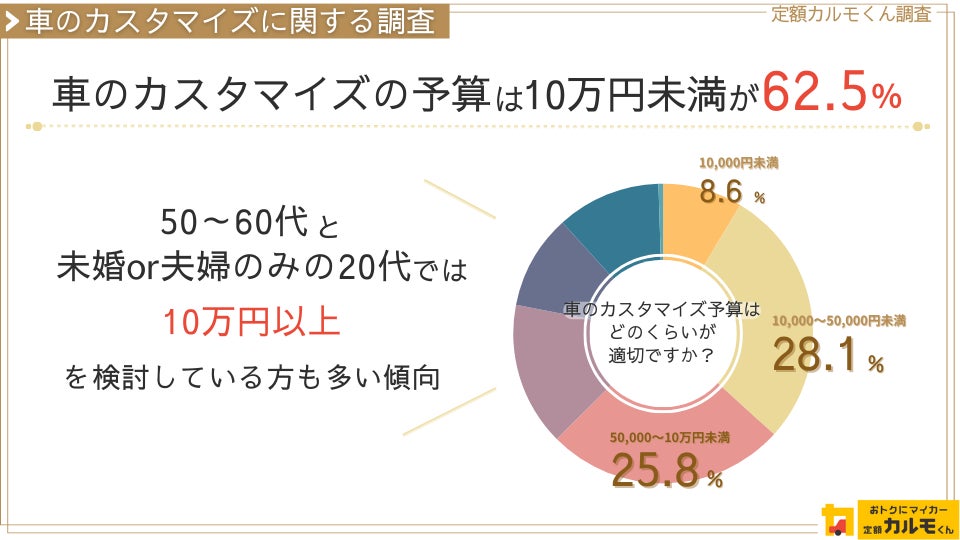 【車のカスタマイズに関する調査】車のカスタマイズの予算は10万円未満が62.5%