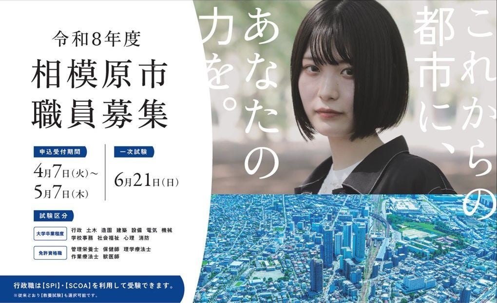 相模原市では、このたび令和8年度の職員採用試験(大学卒業程度及び免許資格職)の実施を公表し、受験者の募集をスタートしました。