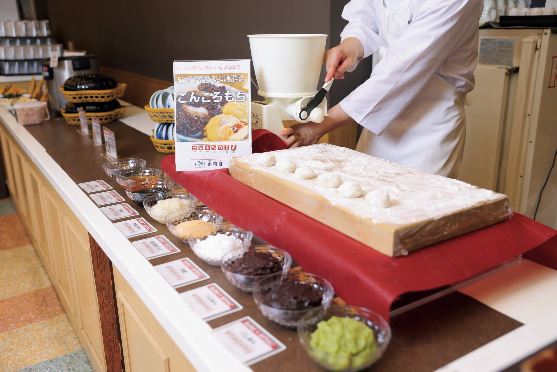 また、夕食のプレミアムビュッフェでは、阿蘇グルメの筆頭「赤牛」の焼しゃぶステーキや季節の天ぷら、旬の握り寿司などオープンキッチンで作り立てをご用意しています。朝食は「あずき&きなこ」を新コンセプトに、ハレの日に相応しい熊本の郷土菓子「こんころ餅」やミニッツステーキを作り立てで提供している他、ヌードルバーには熊本ラーメンやタイピーエンなどが並びます。