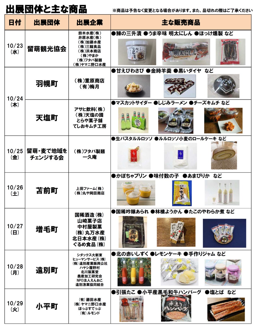 そんな留萌地域の特産品を販売する『北海道のひだり上 るもいフェア』を、10月23日(水)~29日(火)に、北海道どさんこプラザ札幌店で開催します。