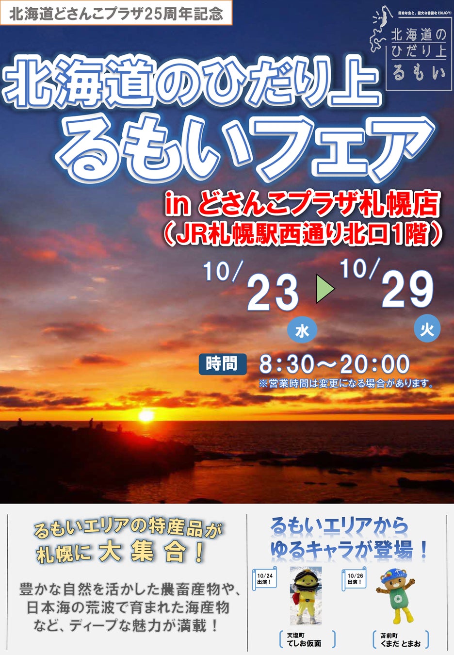 【10月23日(水)~29(火)】北海道どさんこプラザ札幌店で「北海道のひだり上るもいフェア」を開催します