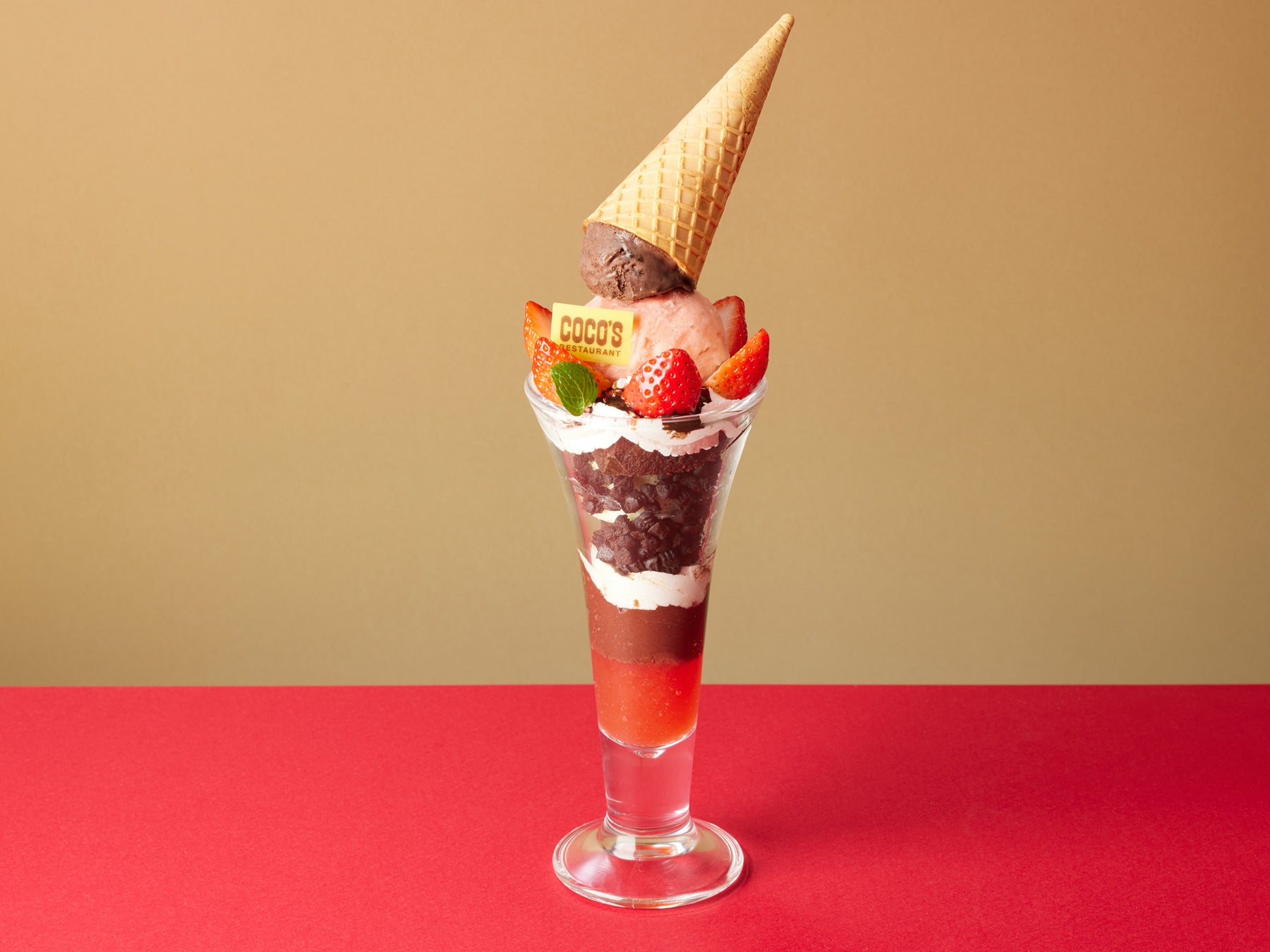 本フェアでは、いちごをたっぷりトッピングした華やかなビッグパフェをはじめ、甘酸っぱいいちごと濃厚なチョコレートを楽しめる至福のデザート4品が登場します。