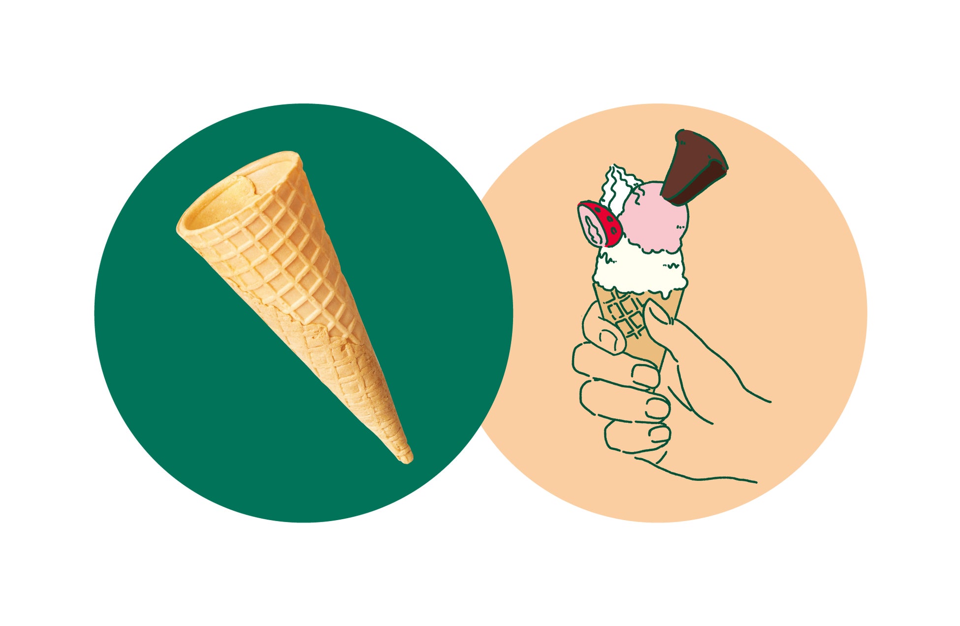 ワッフルコーンは単品でも販売しますので、みんなでシェアしてお楽しみいただくのもおすすめです。