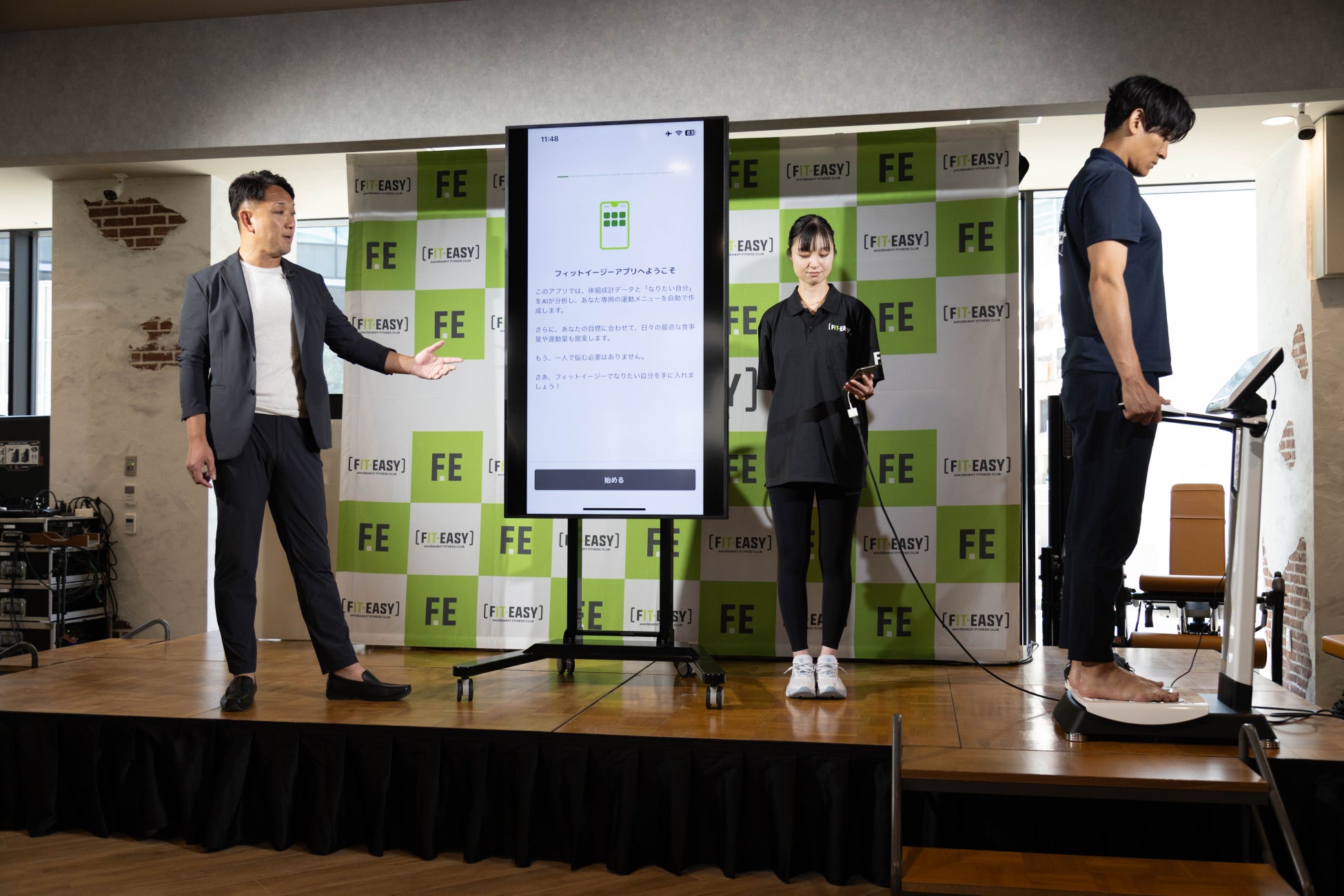 さらに、7月23日にリリースされた「FIT-EASY公式アプリ」の仕様を基に、AI顔認証体組成計とアプリを連携したヘルスケアオートメーションの実演を行いました。