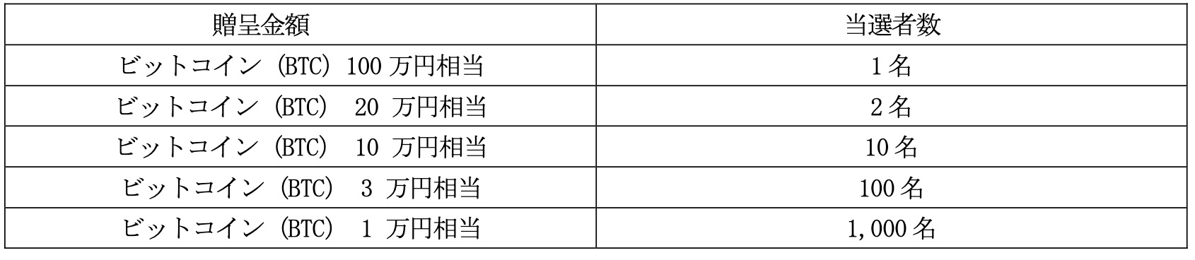 対象となる株主の皆様の中から、抽選により 総額15.4百万円相当 のビットコイン(BTC)を贈呈いたします。