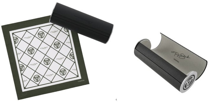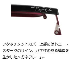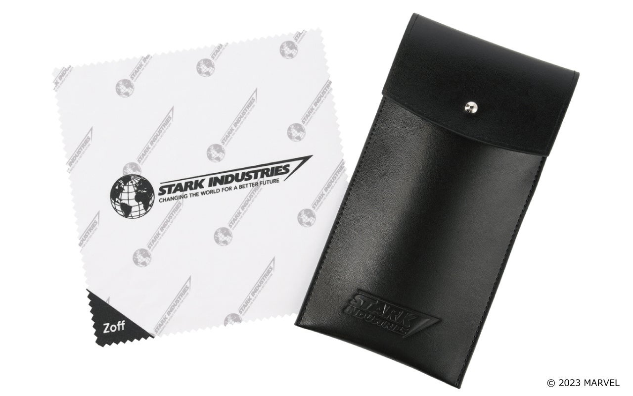 すべてのフレームに、スターク・インダストリーのロゴが入った、オリジナルケース&メガネ拭きが付きます。